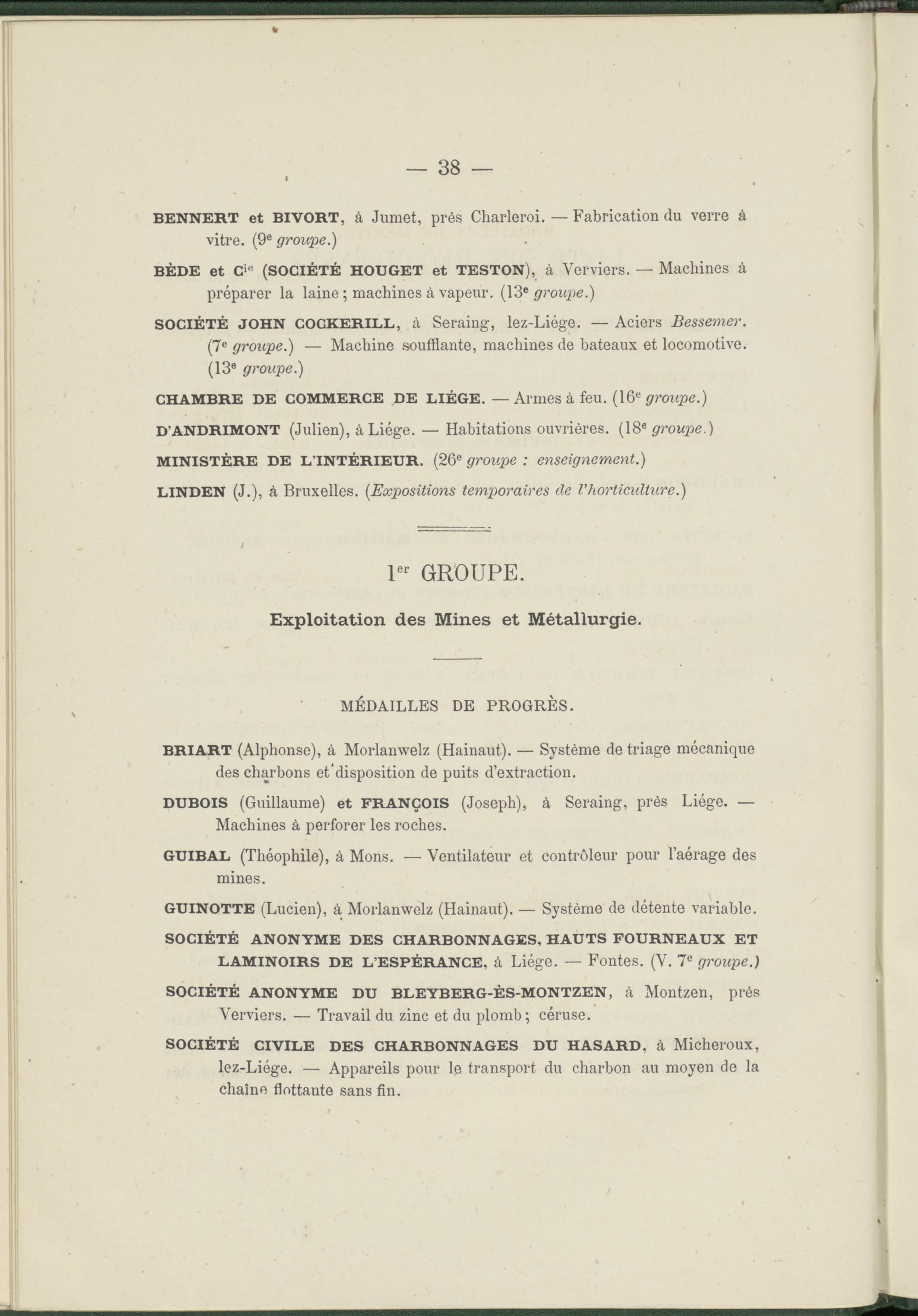 Liste des récompenses décernées aux exposants et aux coopérateurs Belges