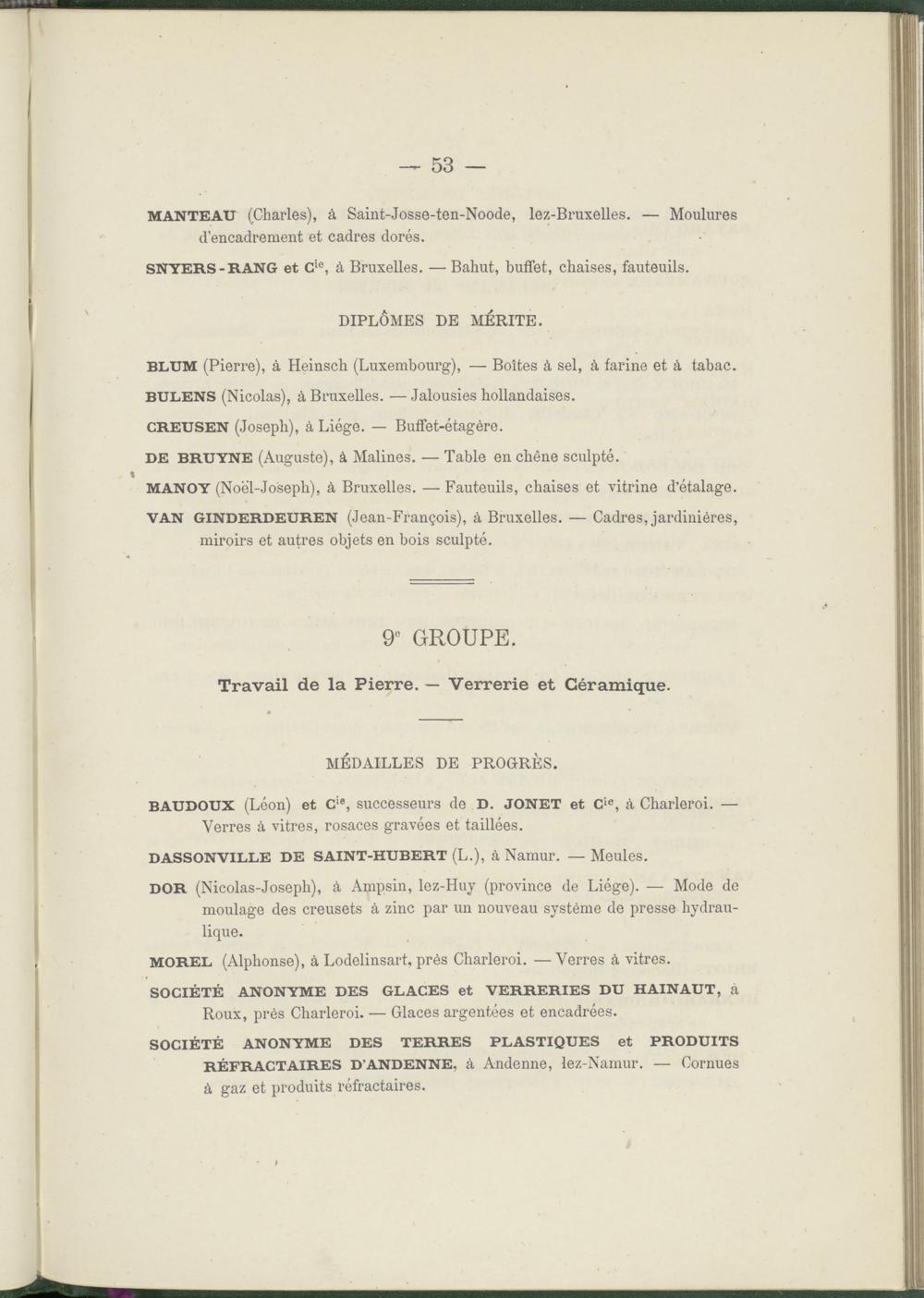 Liste des récompenses décernées aux exposants et aux coopérateurs Belges