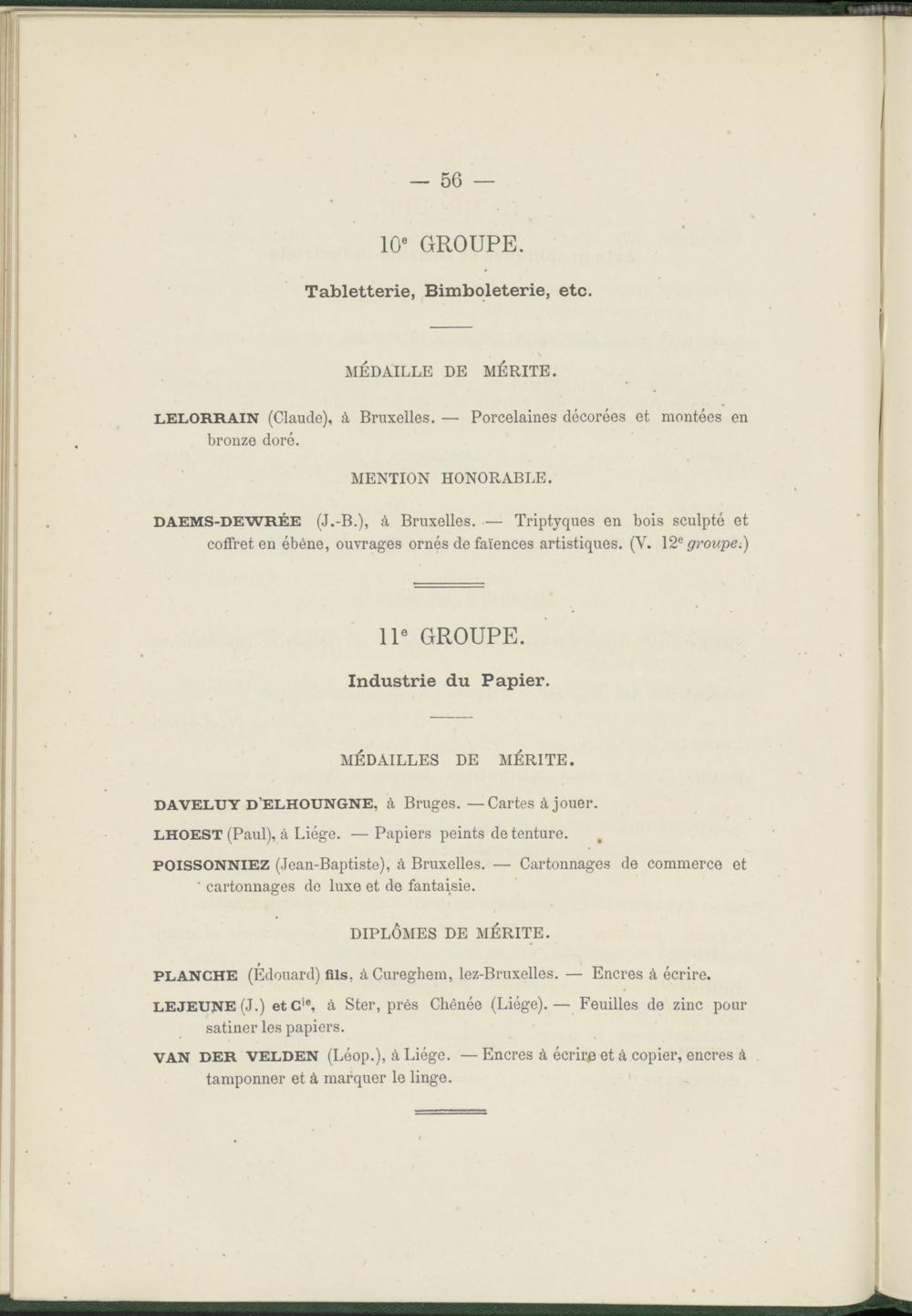 Liste des récompenses décernées aux exposants et aux coopérateurs Belges