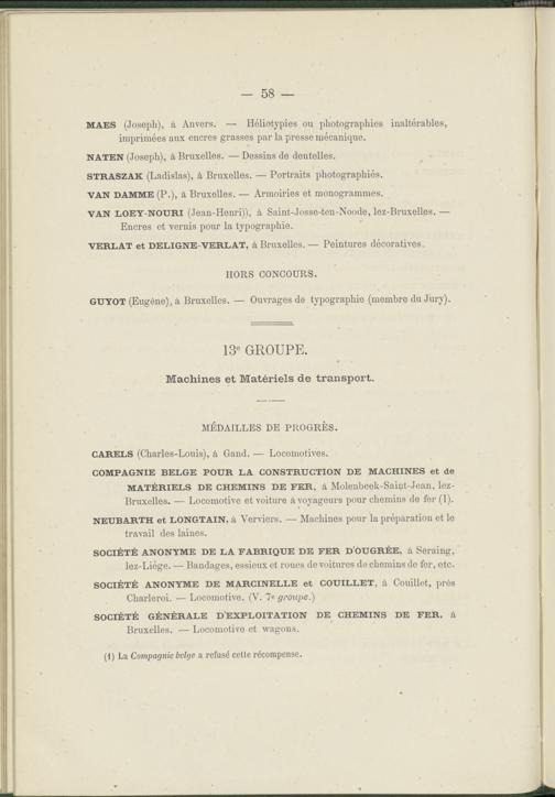 Liste des récompenses décernées aux exposants et aux coopérateurs Belges
