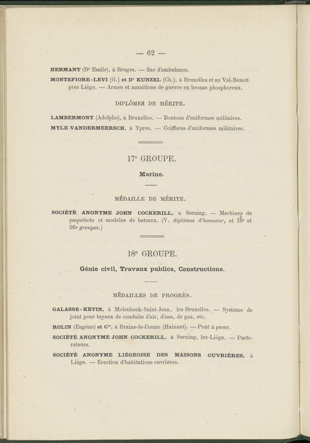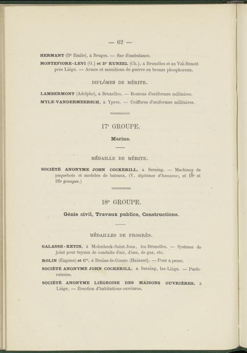 Liste des récompenses décernées aux exposants et aux coopérateurs Belges
