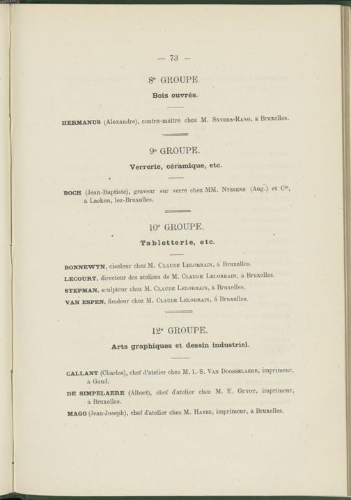 Liste des récompenses décernées aux exposants et aux coopérateurs Belges
