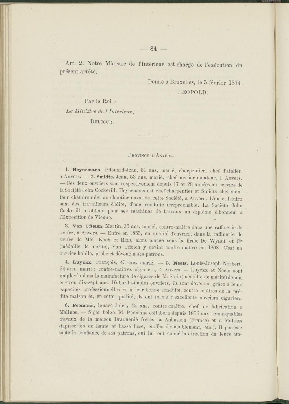 Nominations & promotions dans l'ordre de Léopold faites a l'occasion de l'Exposition Universelle de 1873