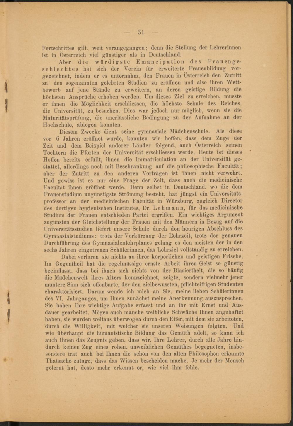 BIBL-41709-1: 4.1891/1892 : Beilage: Vortrag von Marianne Hainisch "Ein Mutterwort über die Frauenfrage" ; Vortrag des Herrn Univ.-Prof. Dr. C. B. Brühl: Einiges über die Gaben der Natur an die Frau und die Konsequenzen hieraus für Bedeutung, Stellung, Aufgaben und Rechte der Frau in der menschlichen Gesellschaft