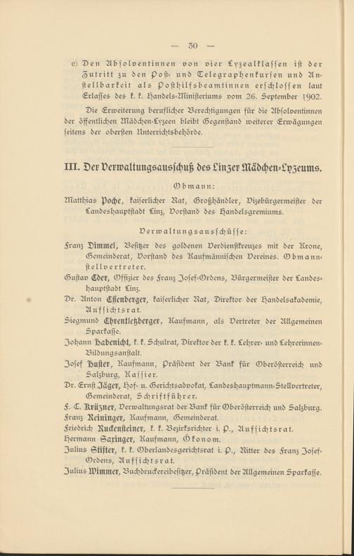 III. Der Verwaltungsausschuß des Linzer Mädchen-Lyzeums