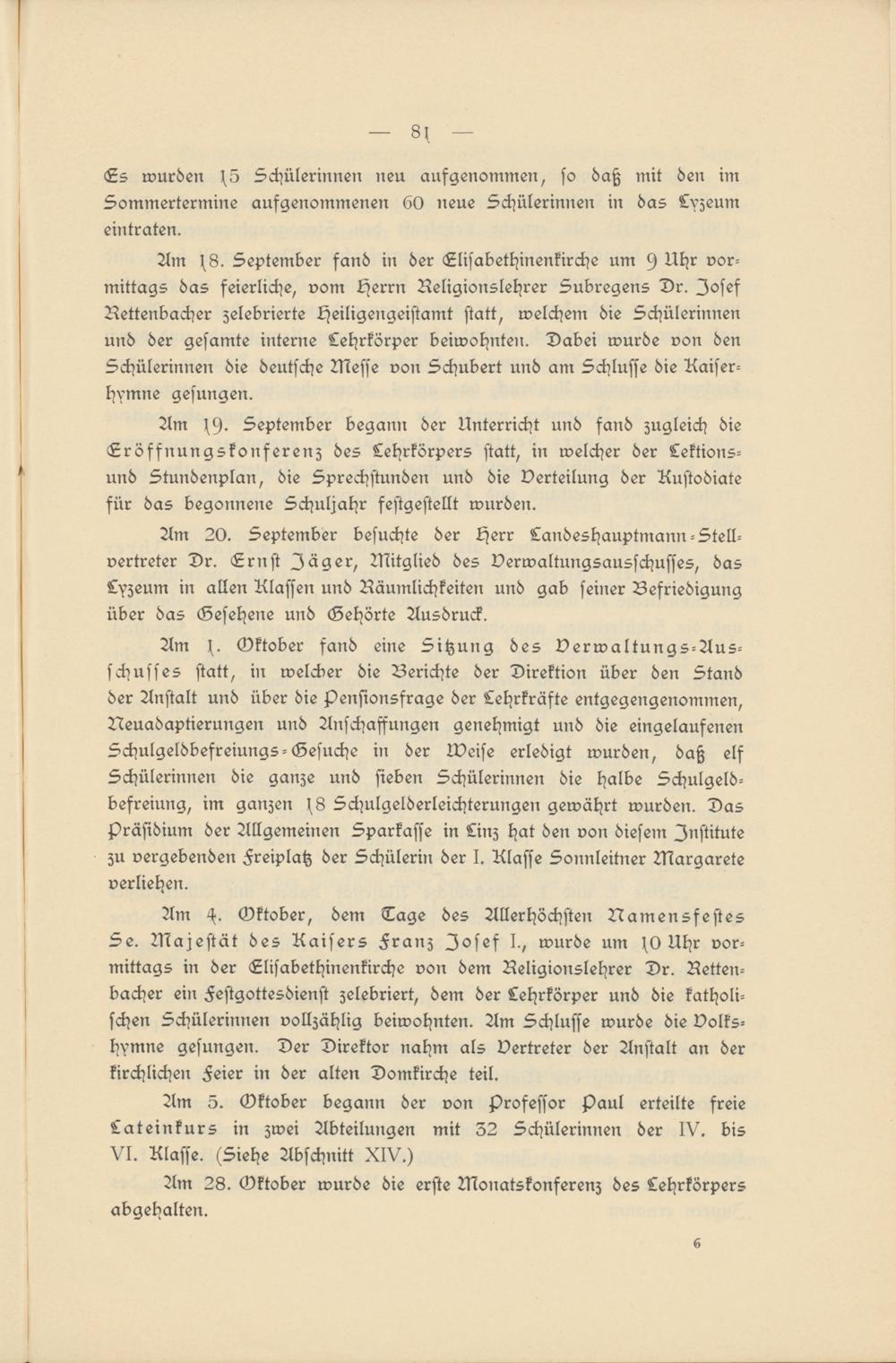 BIBL-41708: XVI. Jahresbericht des öffentlichen Mädchen-Lyzeums in Linz : über das Schuljahr 1905; mit Öffentlichkeitsrecht l. h. Ministerial-Erlasses vom 13. Juni 1894, B.11.676