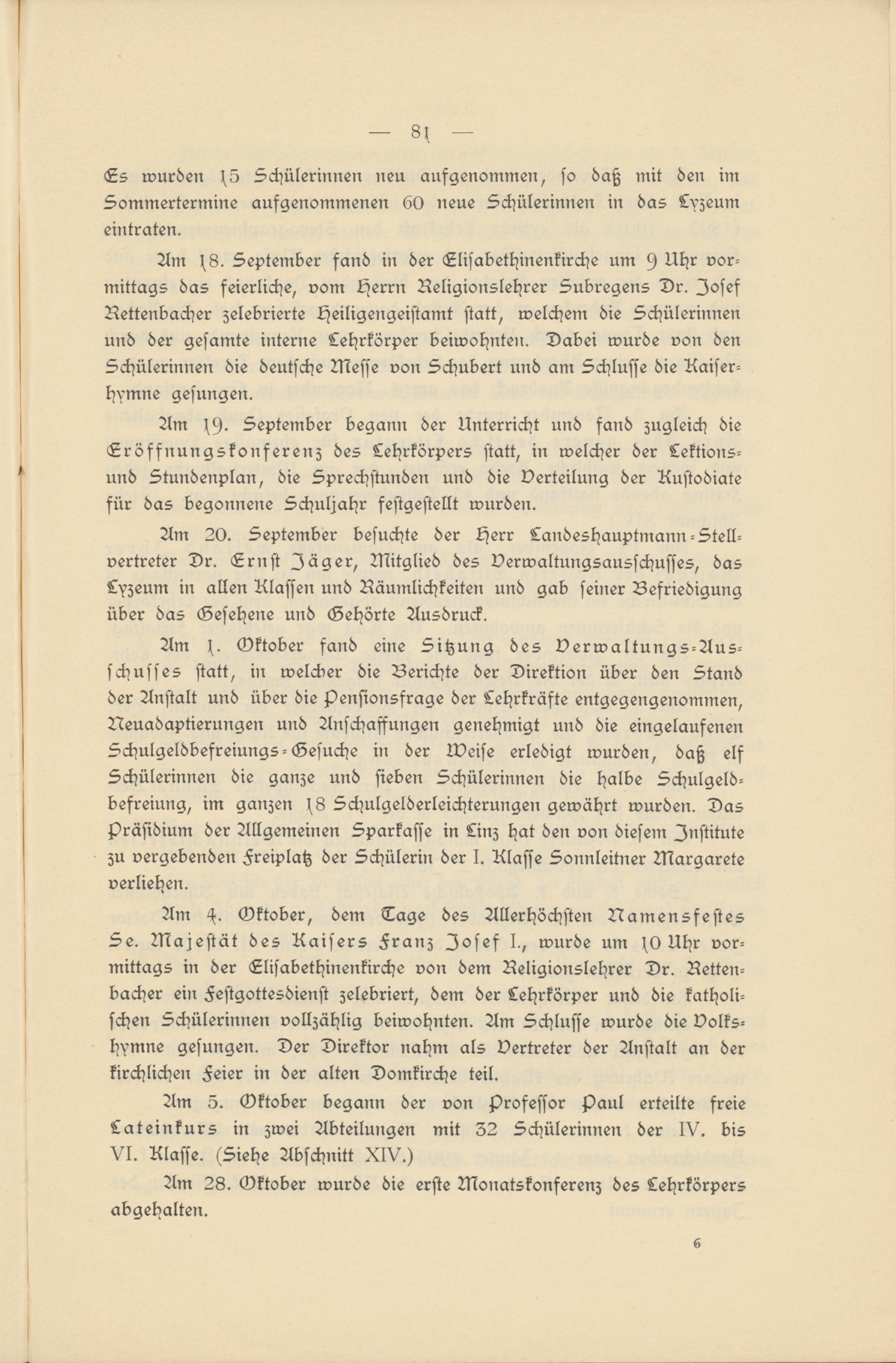 III. Der Verwaltungsausschuß des Linzer Mädchen-Lyzeums