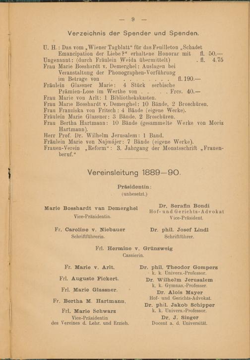 2.1889/1890 : Beilage: Vortrag des Fräulein Dr. Med. Agnes Bluhm: Leben und Streben der Studentinnen in Zürich : Vortrag des Fräulein Sophie Baranius: "Die Frau in Finnland und Skandinavien" : [nebst einer Schilderung des Pariser Frauen-Congresses].