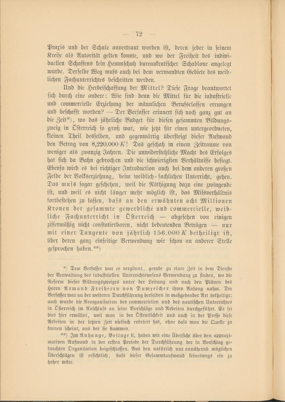 Beilage D: Gegenwärtiger Aufwand des österr. Staates für die gewerbliche und commercielle Bildung des weiblichen Geschlechtes