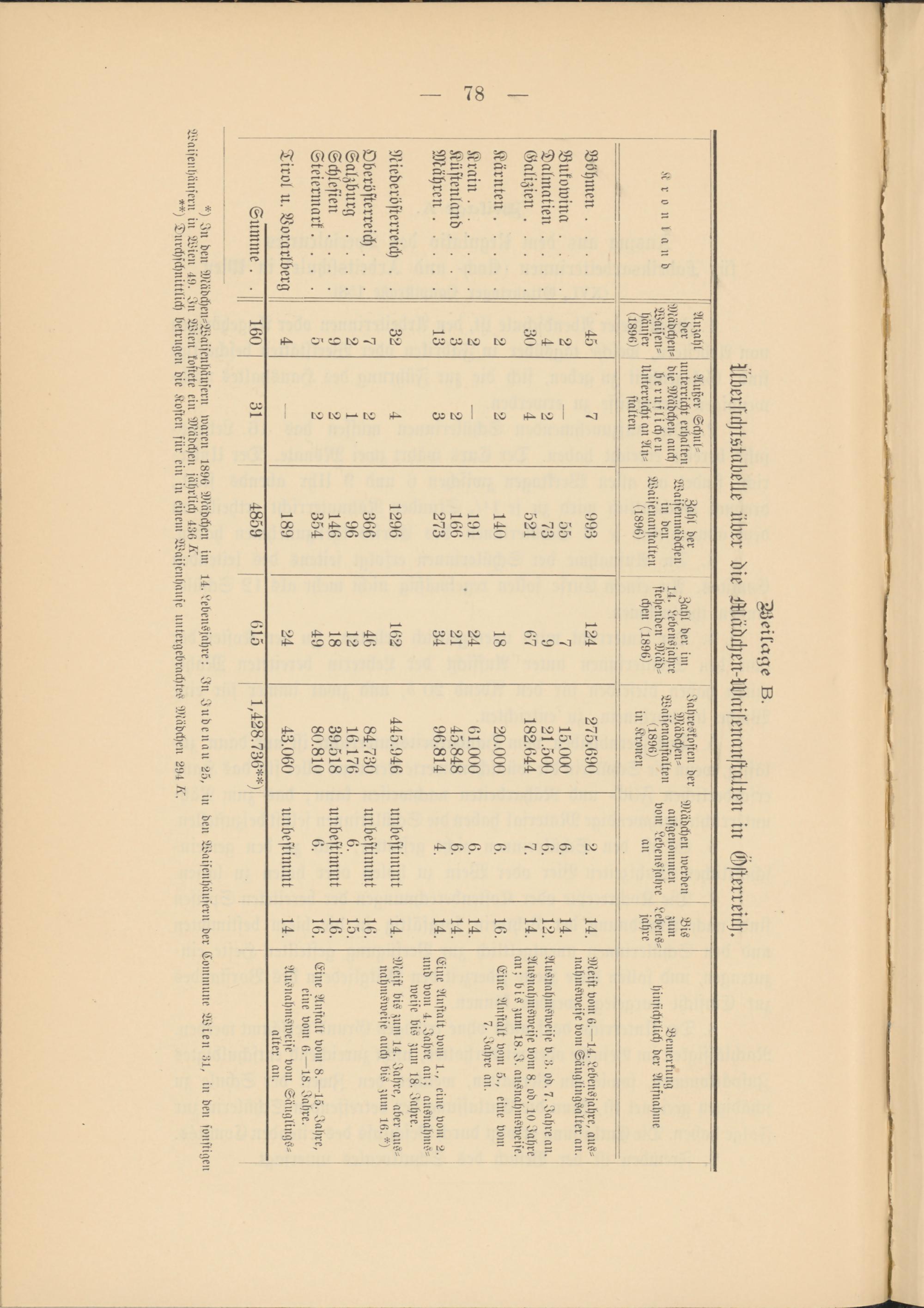 Beilage B: Übersichtstabelle über die Mädchen-Waisenanstalten in Österreich