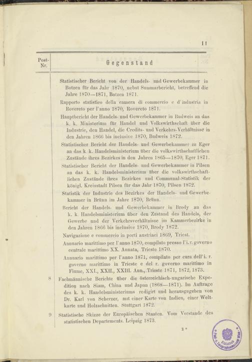 BIBL-P1458-1: Verzeichniss der vom k. k. Handels-Ministerium bei der Weltausstellung 1873 in Wien ausgestellten Gegenstände
