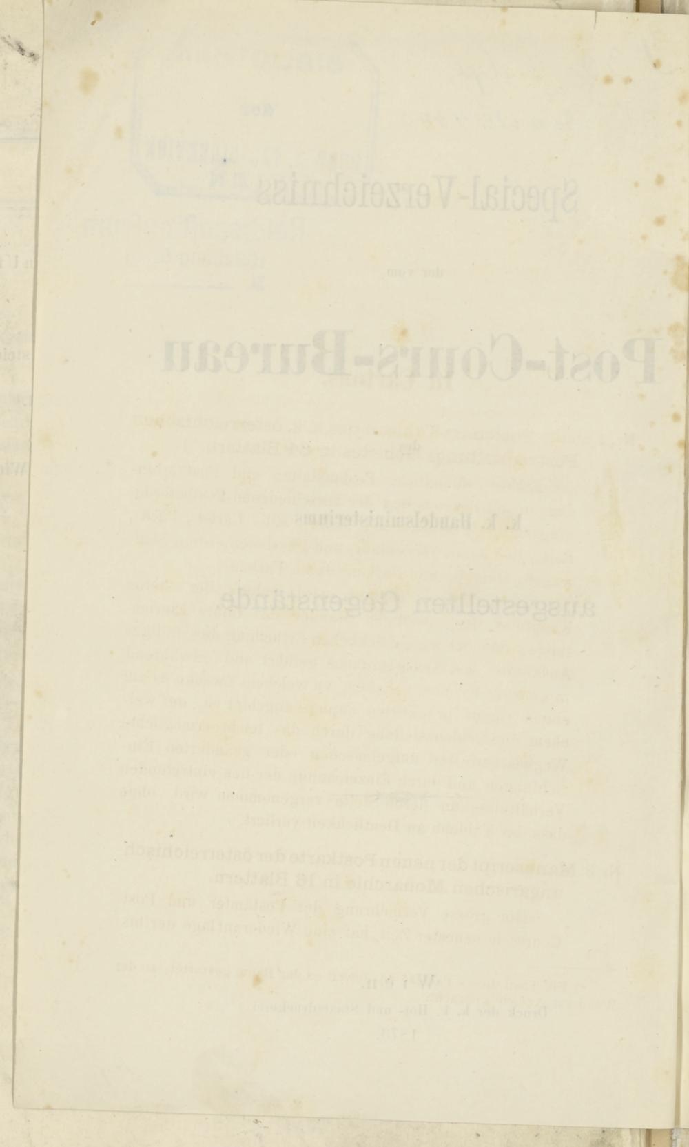 Spezial-Verzeichniss der vom Post-Cours-Bureau des k. k. Handelsministeriums ausgestellten Gegenstände