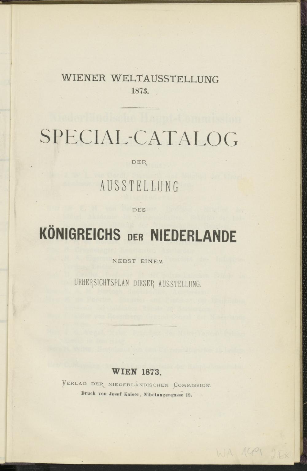 BIBL-WA149: Special-Catalog der Ausstellung des Königreichs der Niederlande : nebst einem Übersichtsplan dieser Ausstellung
