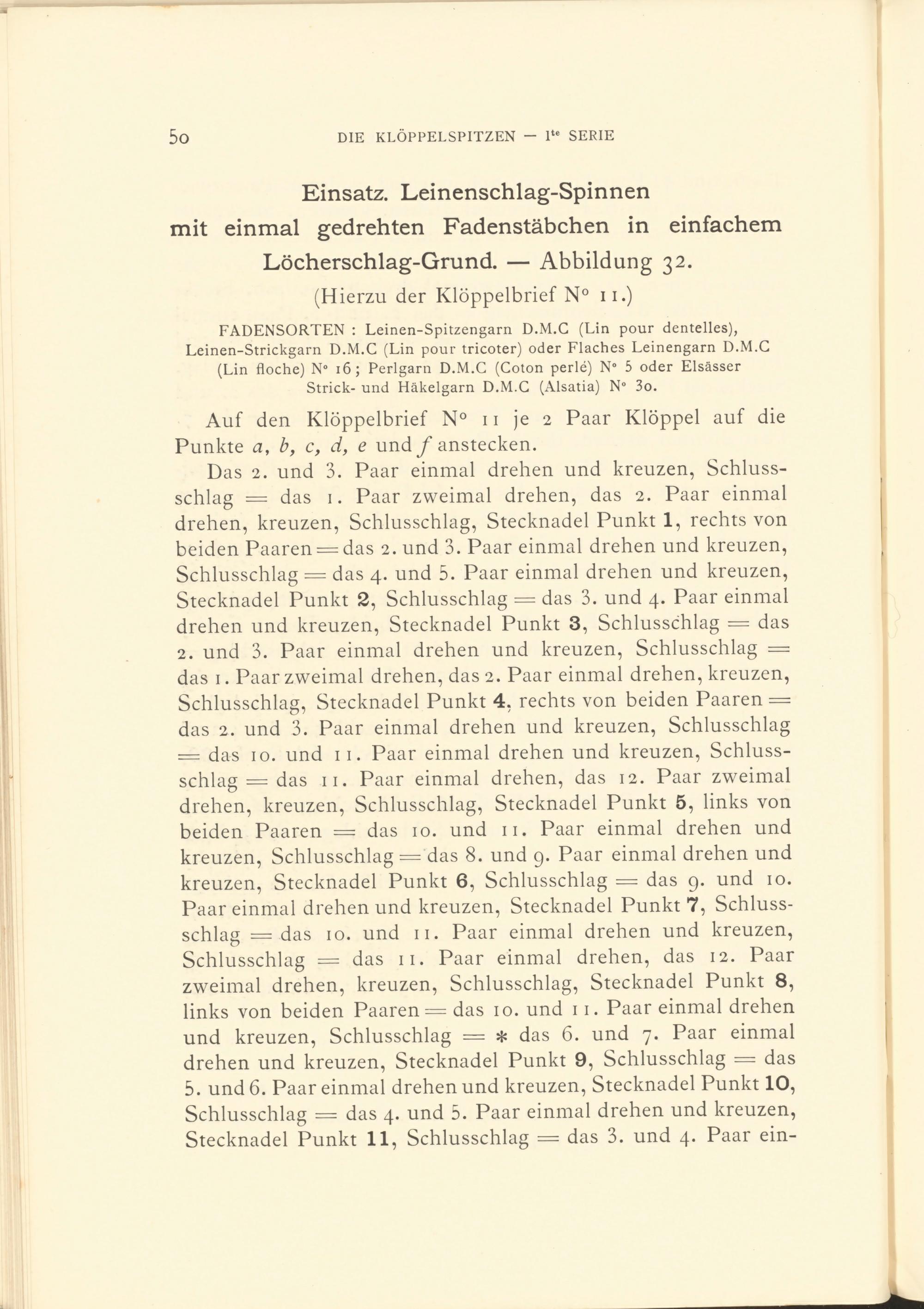 Verzeichnis der Fadenstärken und Nummern der Produkte in Baumwolle, Marke D.M.C