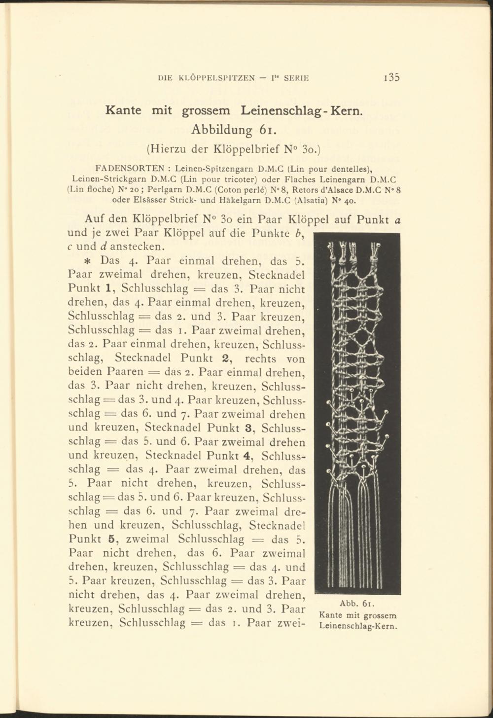 Verzeichnis der Fadenstärken und Nummern der Produkte in Baumwolle, Marke D.M.C