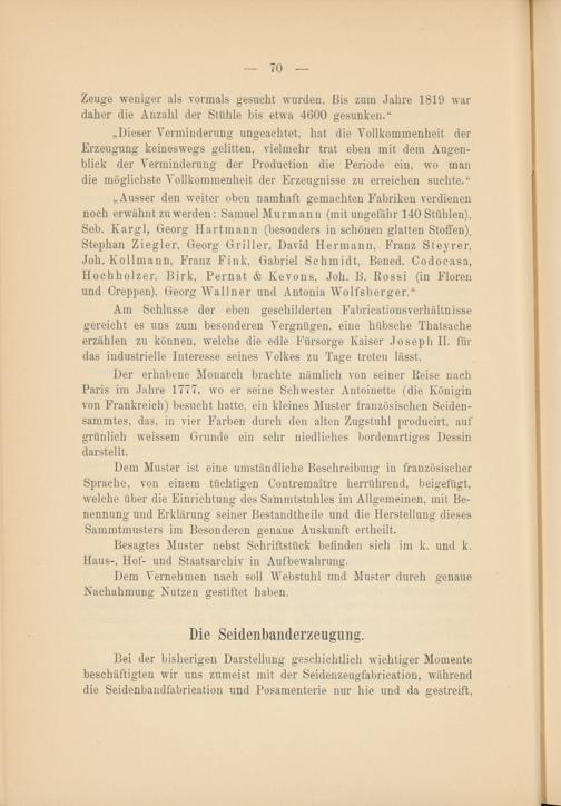 II. Theil: Die österreichische Seiden-Industrie von der Mitte des XVIII. Jahrhunderts bis in die neueste Zeit