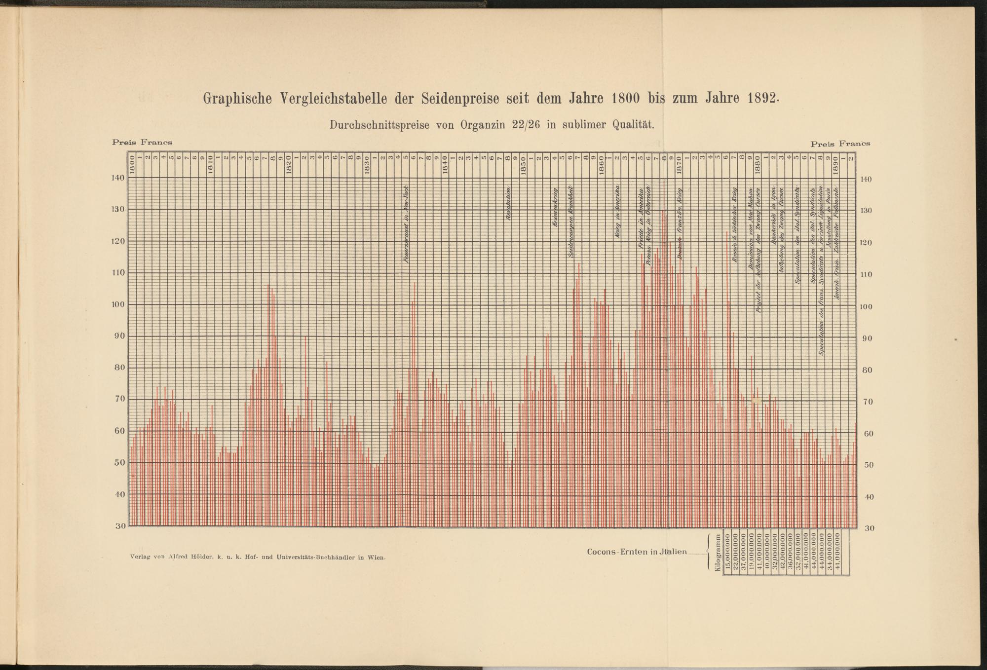 Graphische Vergleichstabelle der Seidenpreise seit dem Jahre 1800 bis zum Jahre 1892