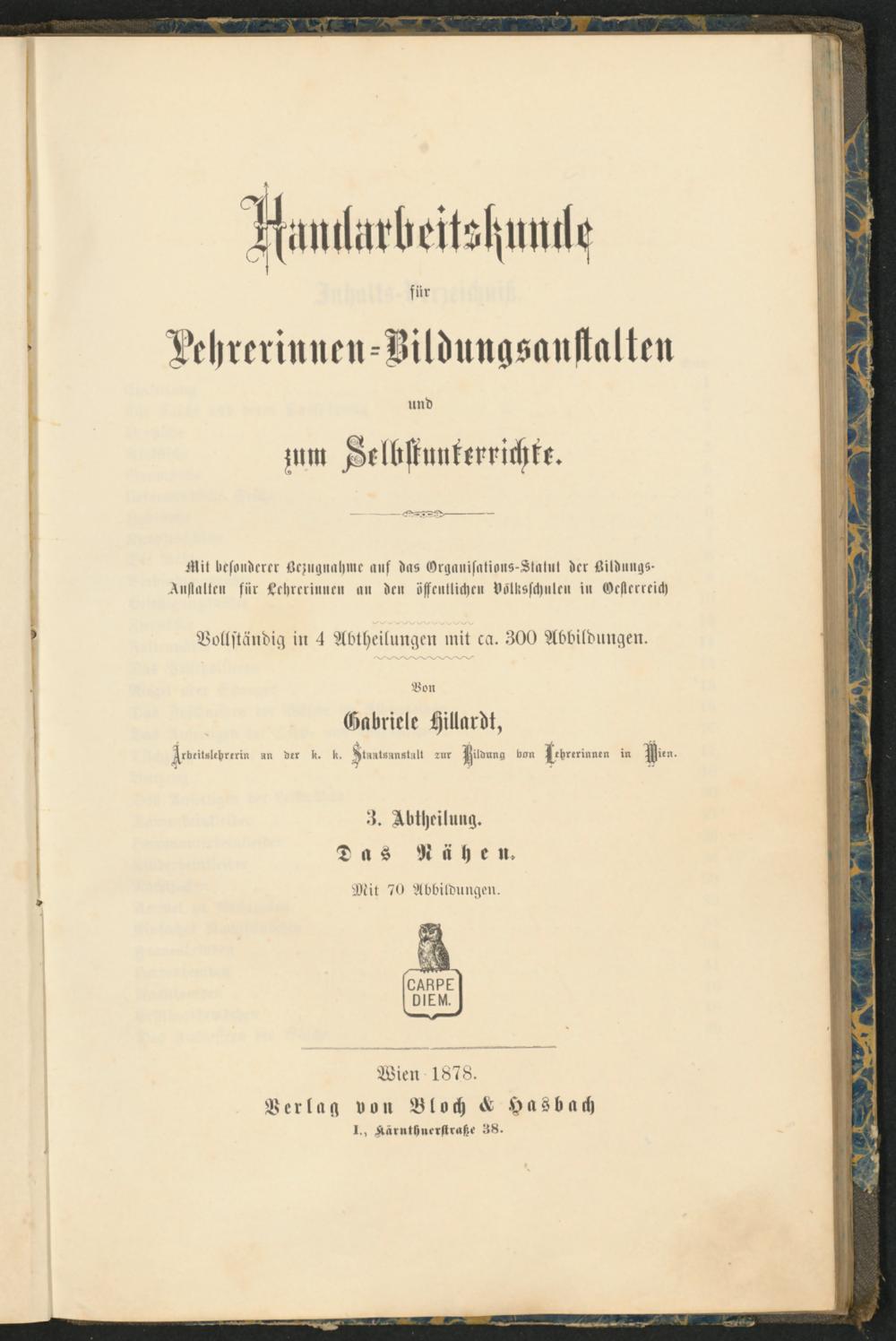 Handarbeitskunde für Lehrerinnen-Bildungsanstalten und zum Selbstunterrichte : vollständig in 4 Abtheilungen mit ca. 300 Abbildungen / von Gabriele Hillardt