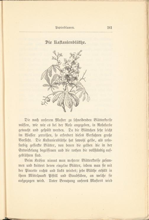 Künstliche Blumen aus verschiedenem Material als: aus Stoffen, Papier, Gold, Silber, Wolle, Chenille, Perlen, Band, Federn, Haaren, Muscheln, Fischschuppen, Wachs und Leder naturgetreu herzustellen ; nebst einem Anhang über Blumen- und Farben-Symbolik ; ein Handbuch für Blumenarbeiterinnen, Modistinnen und Dilettantinnen ; nach französischen Quellen bearbeitet und ergänzt ; illustrirt mit 370 in den Text gedruckten Holzschnitten und einem chromolithogr. Titelblatt / von Mathilde Clasen-Schmid