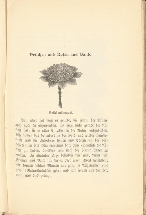 Künstliche Blumen aus verschiedenem Material als: aus Stoffen, Papier, Gold, Silber, Wolle, Chenille, Perlen, Band, Federn, Haaren, Muscheln, Fischschuppen, Wachs und Leder naturgetreu herzustellen ; nebst einem Anhang über Blumen- und Farben-Symbolik ; ein Handbuch für Blumenarbeiterinnen, Modistinnen und Dilettantinnen ; nach französischen Quellen bearbeitet und ergänzt ; illustrirt mit 370 in den Text gedruckten Holzschnitten und einem chromolithogr. Titelblatt / von Mathilde Clasen-Schmid