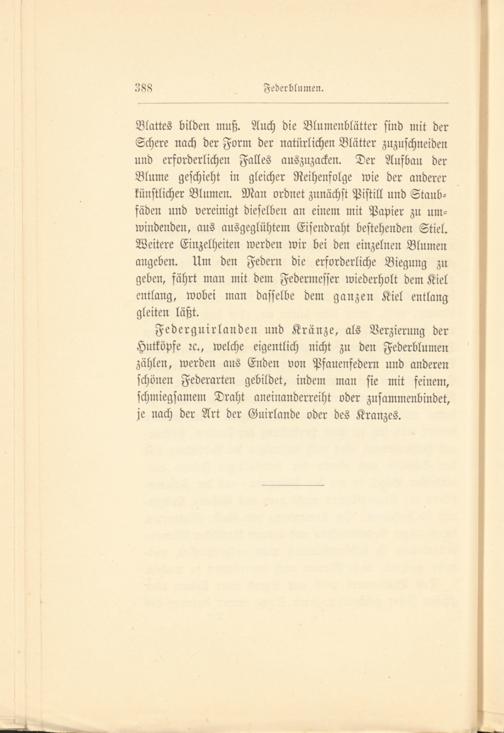 Künstliche Blumen aus verschiedenem Material als: aus Stoffen, Papier, Gold, Silber, Wolle, Chenille, Perlen, Band, Federn, Haaren, Muscheln, Fischschuppen, Wachs und Leder naturgetreu herzustellen ; nebst einem Anhang über Blumen- und Farben-Symbolik ; ein Handbuch für Blumenarbeiterinnen, Modistinnen und Dilettantinnen ; nach französischen Quellen bearbeitet und ergänzt ; illustrirt mit 370 in den Text gedruckten Holzschnitten und einem chromolithogr. Titelblatt / von Mathilde Clasen-Schmid