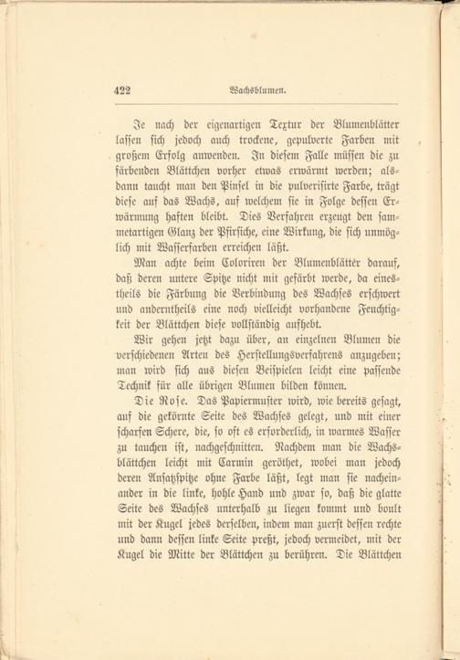 Künstliche Blumen aus verschiedenem Material als: aus Stoffen, Papier, Gold, Silber, Wolle, Chenille, Perlen, Band, Federn, Haaren, Muscheln, Fischschuppen, Wachs und Leder naturgetreu herzustellen ; nebst einem Anhang über Blumen- und Farben-Symbolik ; ein Handbuch für Blumenarbeiterinnen, Modistinnen und Dilettantinnen ; nach französischen Quellen bearbeitet und ergänzt ; illustrirt mit 370 in den Text gedruckten Holzschnitten und einem chromolithogr. Titelblatt / von Mathilde Clasen-Schmid