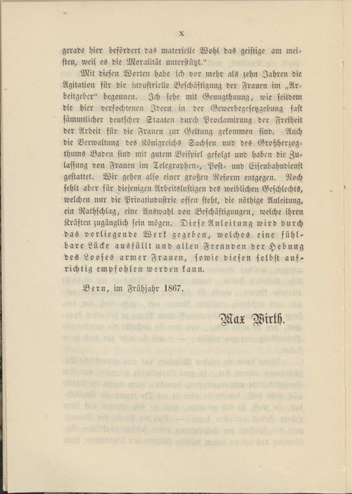 Die Beschäftigung des weiblichen Geschlechts in der Hand-Arbeit oder praktische Nachweisung der Thätigkeit der Frauen im Haushalte, im Verkehr, in der Klein- und Groß-Industrie, in den verschiedenen Gewerben, selbstständigen Erwerbsarten, und den zunächst damit verbundenen Absatz-Geschäften / von A. Daul. Mit einem Vorwort von Max Wirth