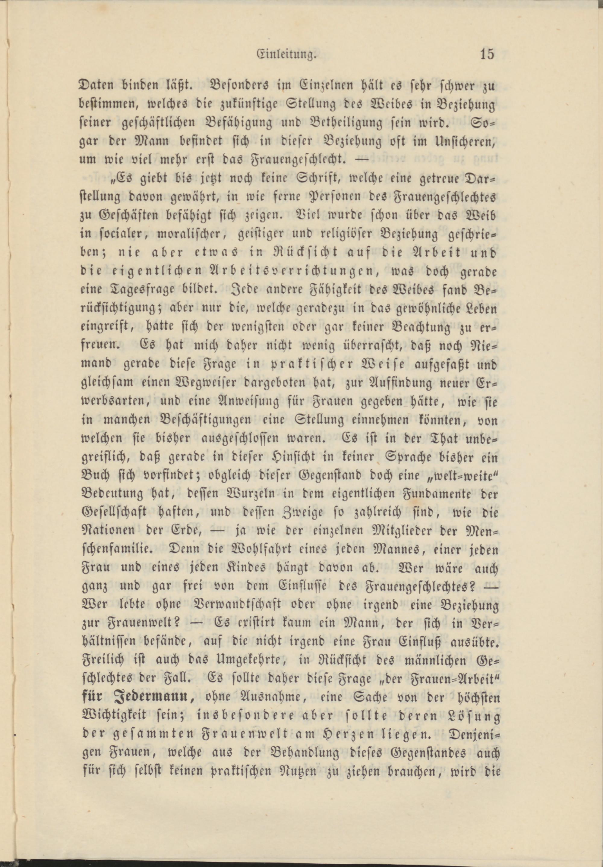 Die Beschäftigung des weiblichen Geschlechts in der Hand-Arbeit oder praktische Nachweisung der Thätigkeit der Frauen im Haushalte, im Verkehr, in der Klein- und Groß-Industrie, in den verschiedenen Gewerben, selbstständigen Erwerbsarten, und den zunächst damit verbundenen Absatz-Geschäften / von A. Daul. Mit einem Vorwort von Max Wirth