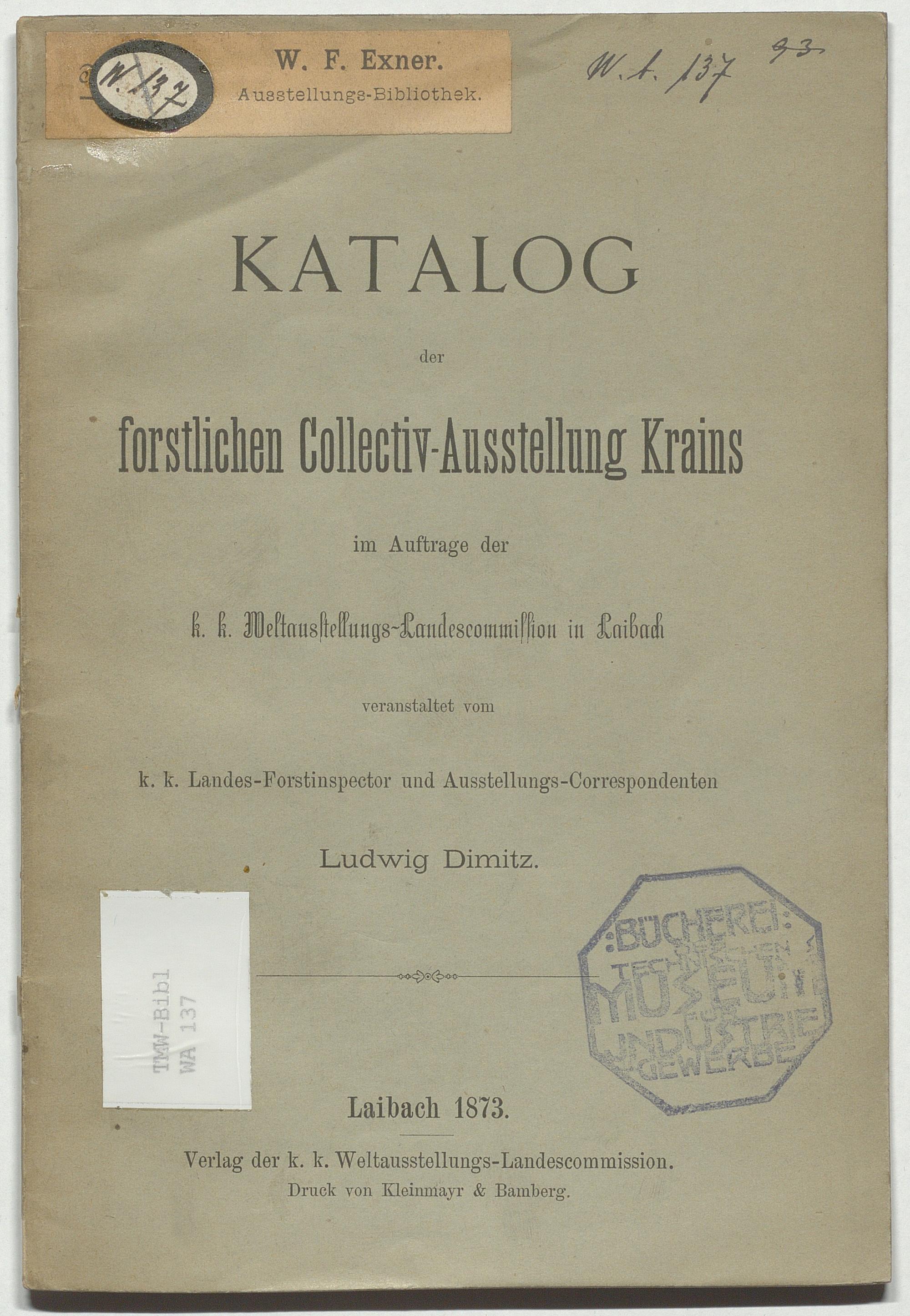 Katalog der forstlichen Collectiv-Ausstellung Krains : im Auftrage der k. k. Weltausstellungs-Landescommission in Laibach / veranstaltet vom k. k. Landes-Forstinspector und Ausstellungs-Correspondenten Ludwig Dimitz