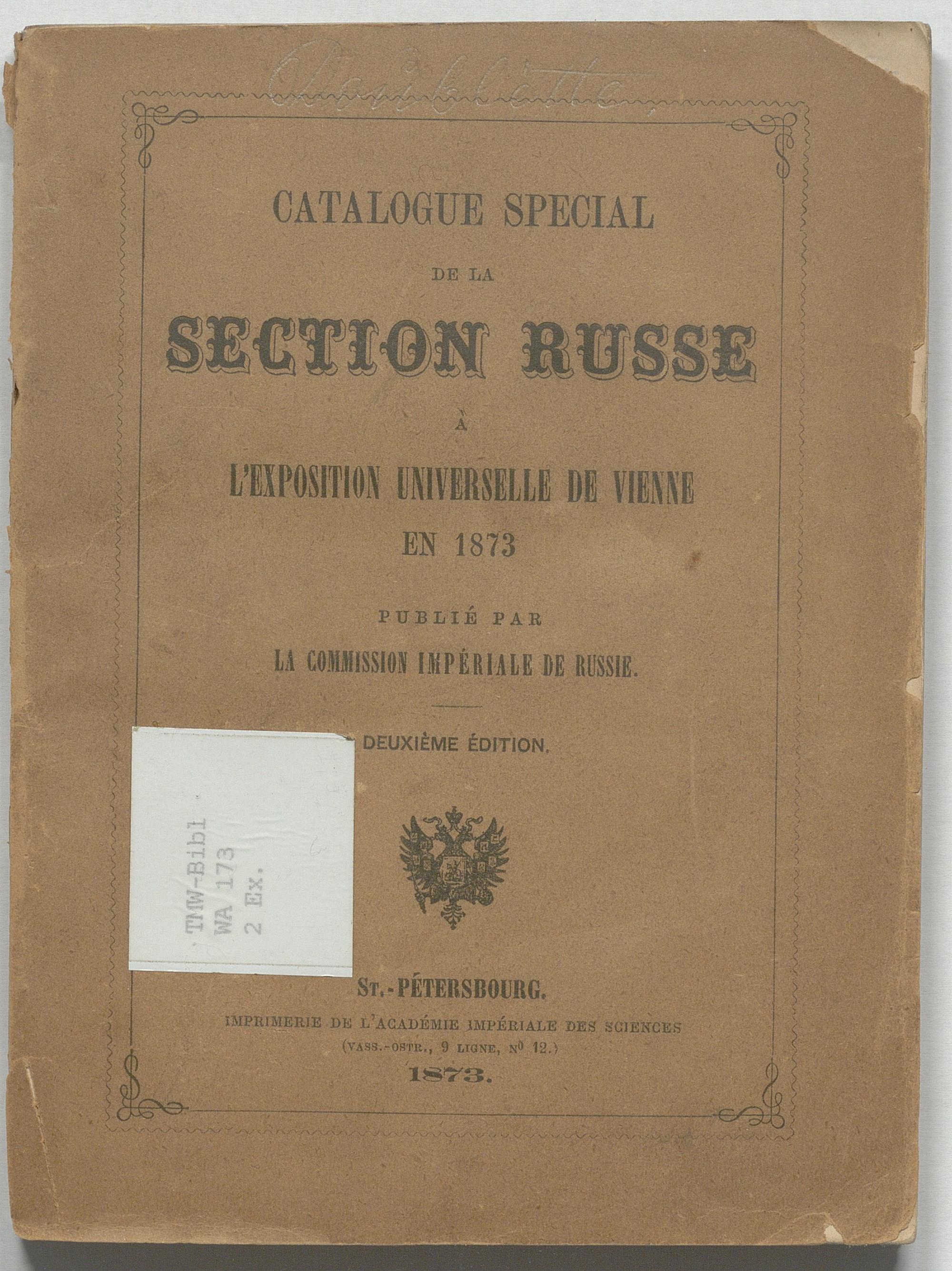 BIBL-WA173: Catalogue spécial de la section russe à l'Exposition universelle de Vienne en 1873