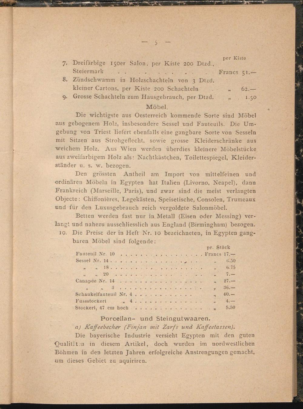 Artikel, welche Egypten aus fremden Ländern importirt