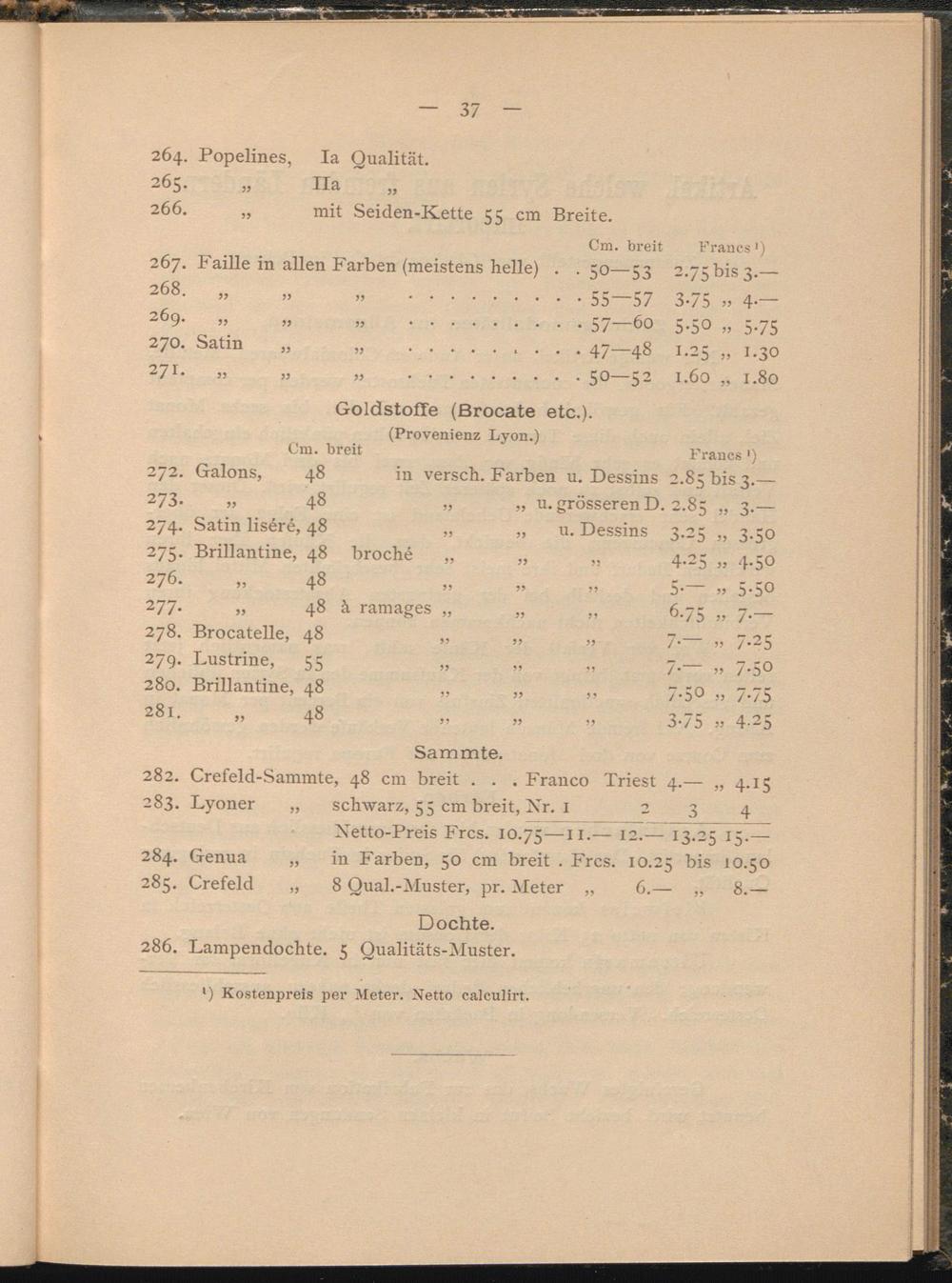 Artikel, welche Constantinopel aus Europa importirt