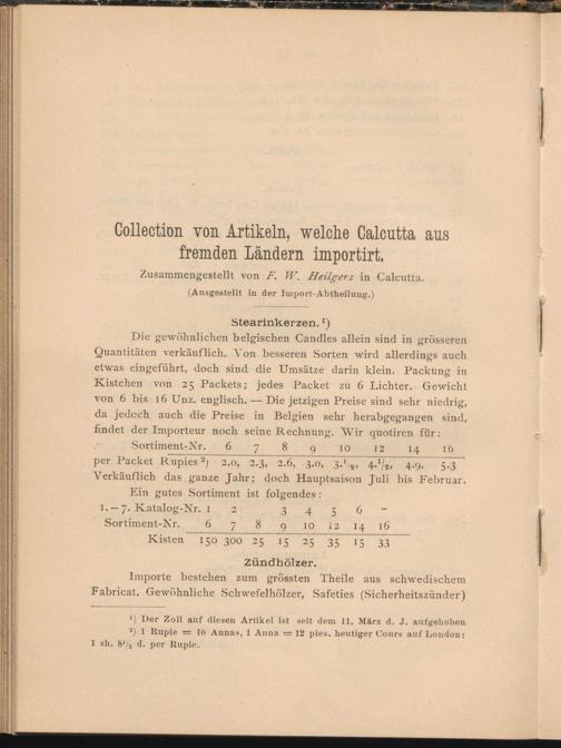 Collection von Artikeln, welche Calcutta aus fremden Ländern importirt