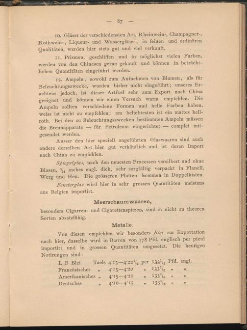 Bemerkungen über einige Artikel, welche Shanghai aus fremden Ländern importirt