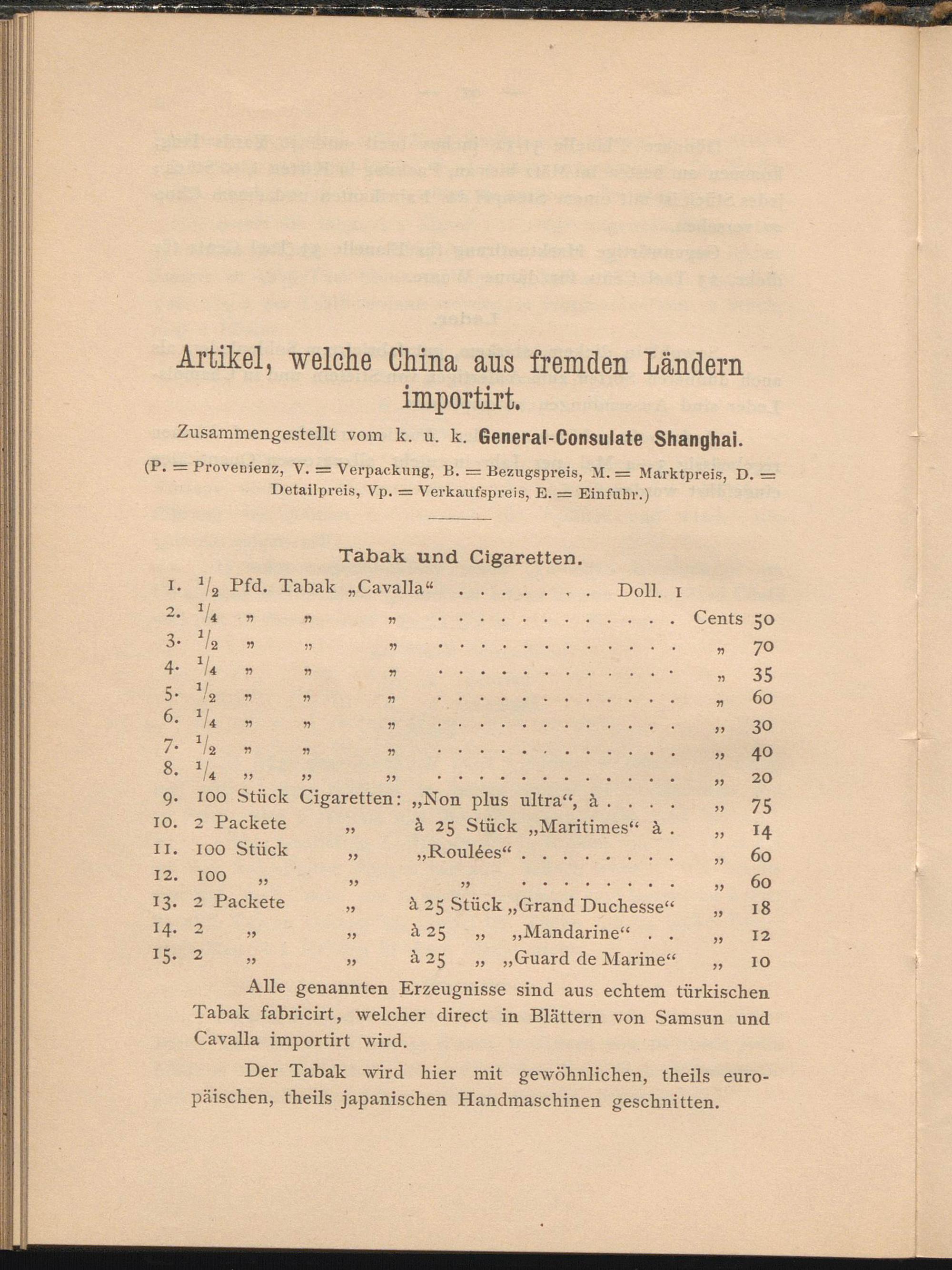Bemerkungen über einige Artikel, welche Shanghai aus fremden Ländern importirt