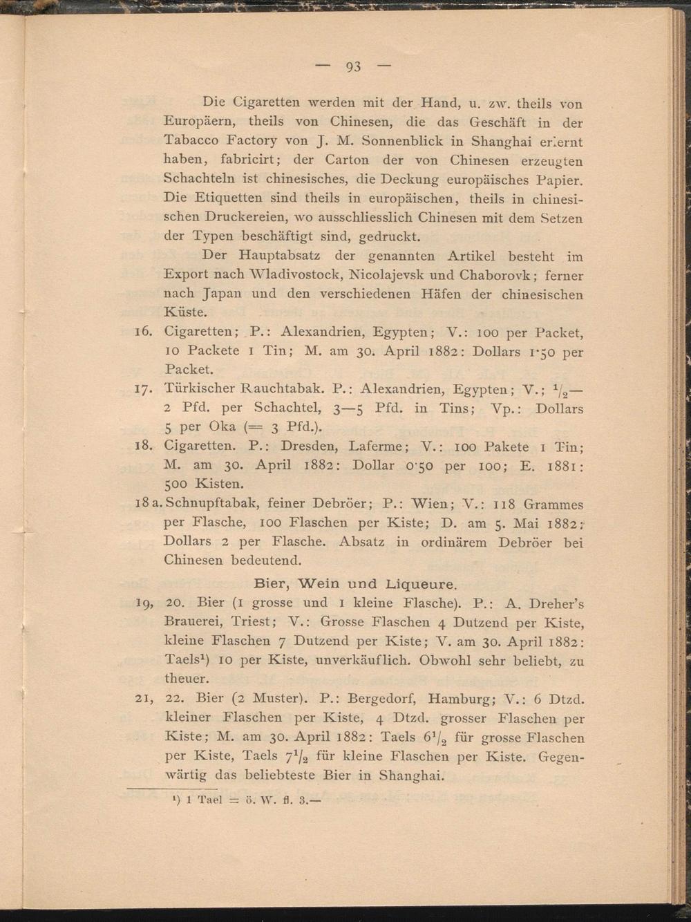 Bemerkungen über einige Artikel, welche Shanghai aus fremden Ländern importirt
