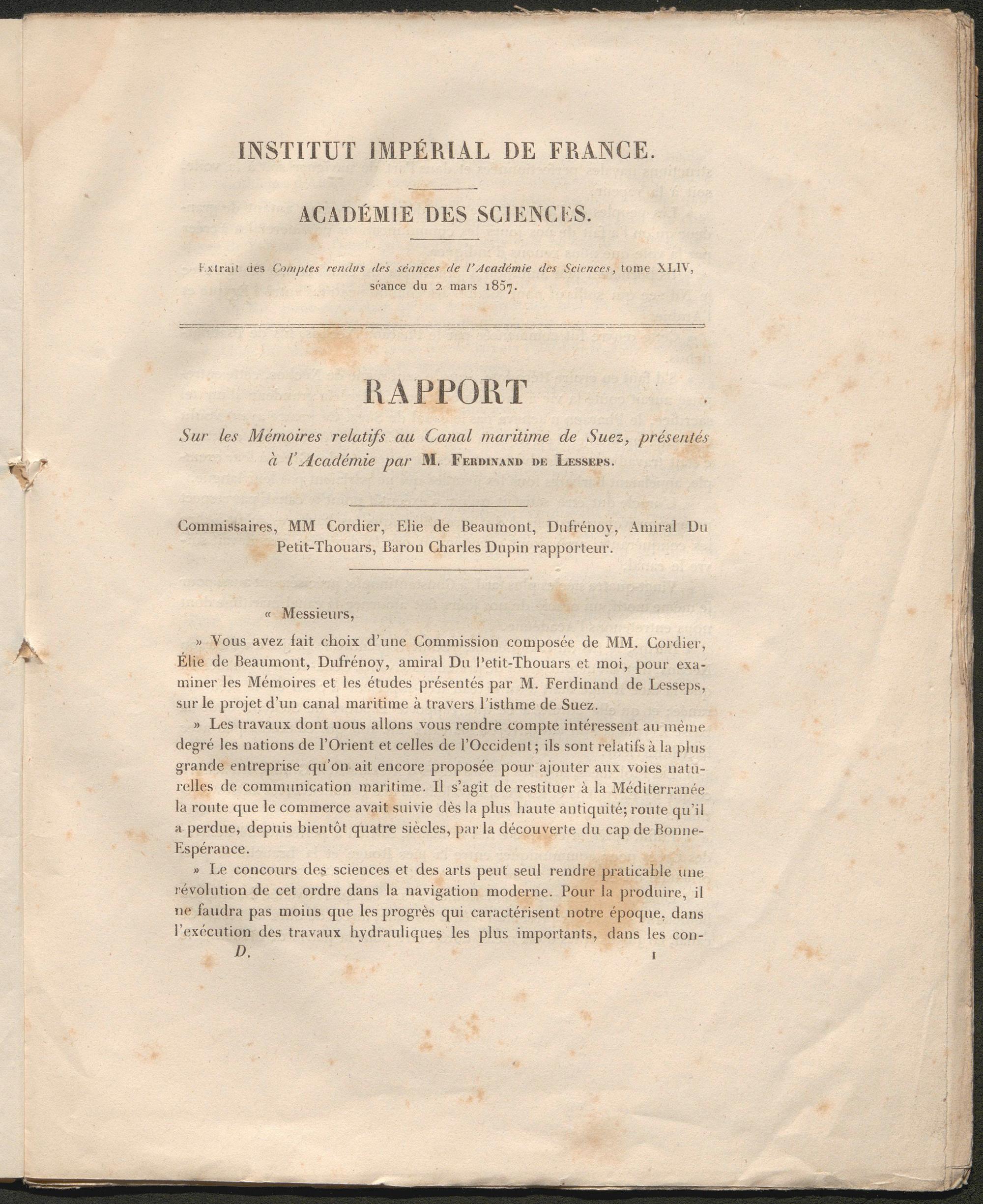 Canal maritime de Suez : rapport / par le Baron Charles Dupin