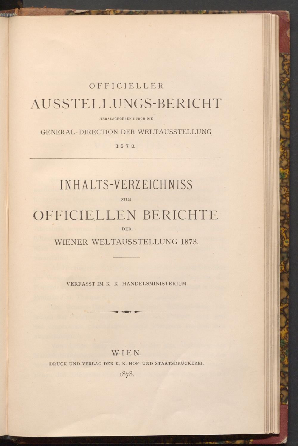 Inhalts-Verzeichniss zum officiellen Berichte der Wiener Weltausstellung / verfasst im K. K. Handelsministerium