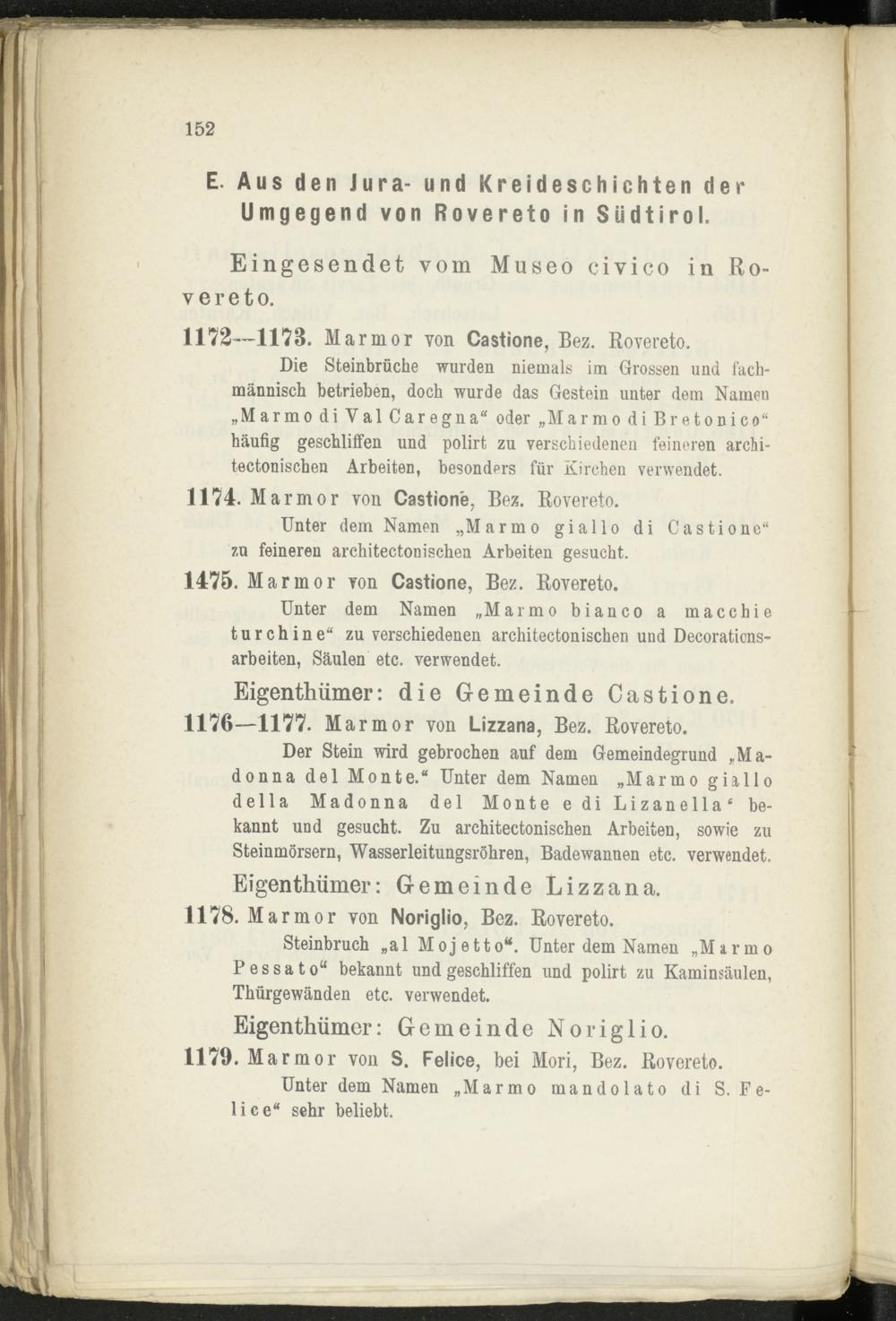 Eigenthümer: die Gemeinde Castione. 11761177. Marm or von Lizzana, Bez. Rovereto.