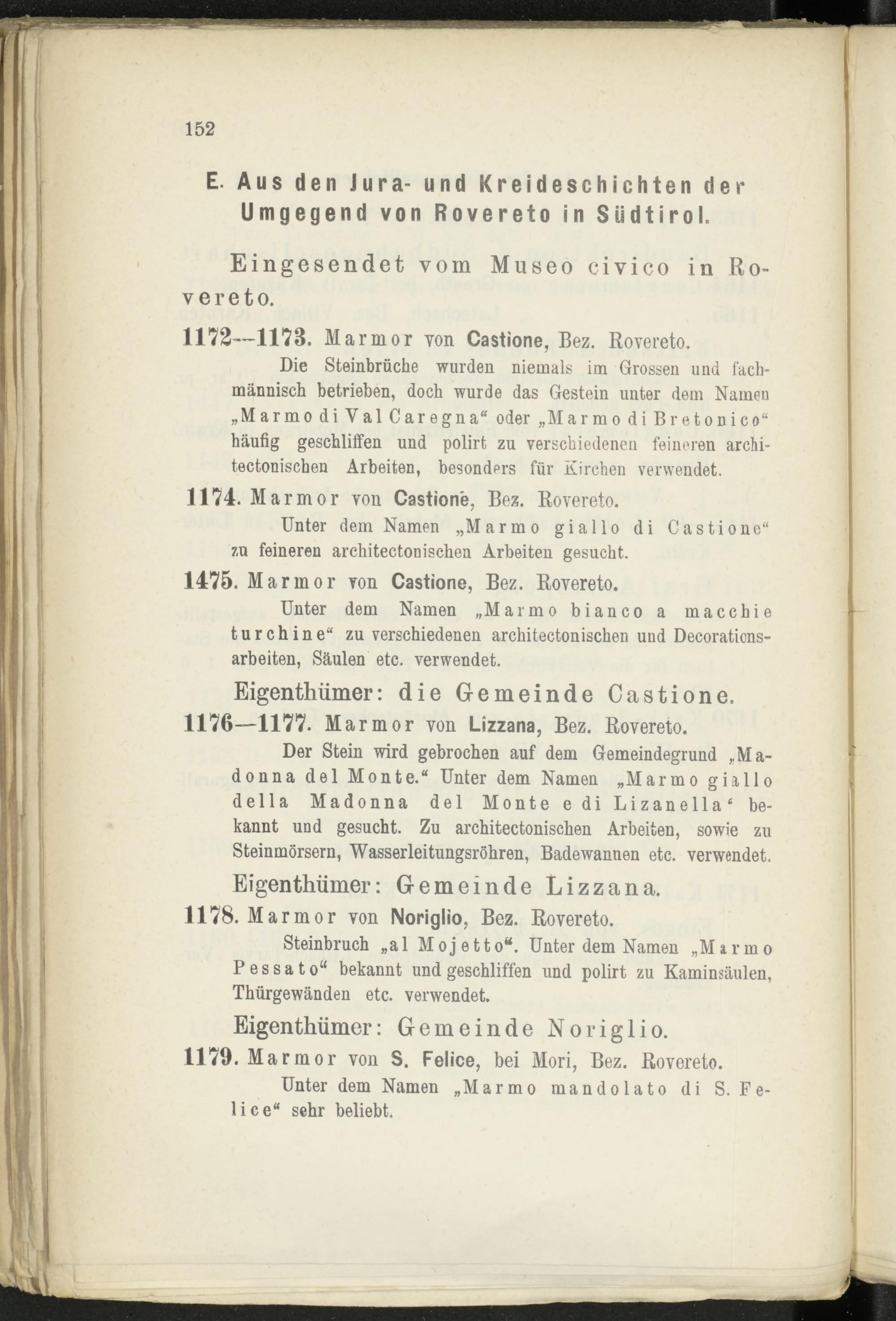 1178. Marmor von Noriglio, Bez. Rovereto.