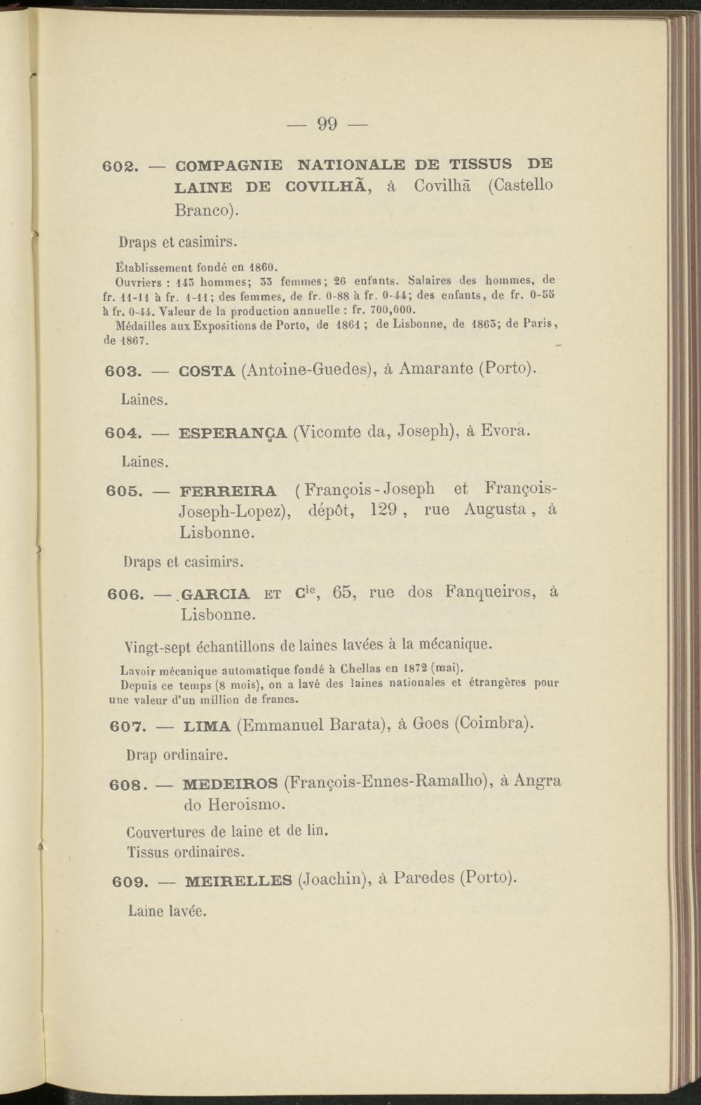 603. — COSTA (Antoine-Guedes), à Amarante (Porto). Laines.
