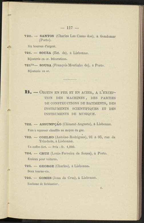 724. — CRUZ (Louis-Ferreira de Sousa), à Porto. Essieux pour voitures.