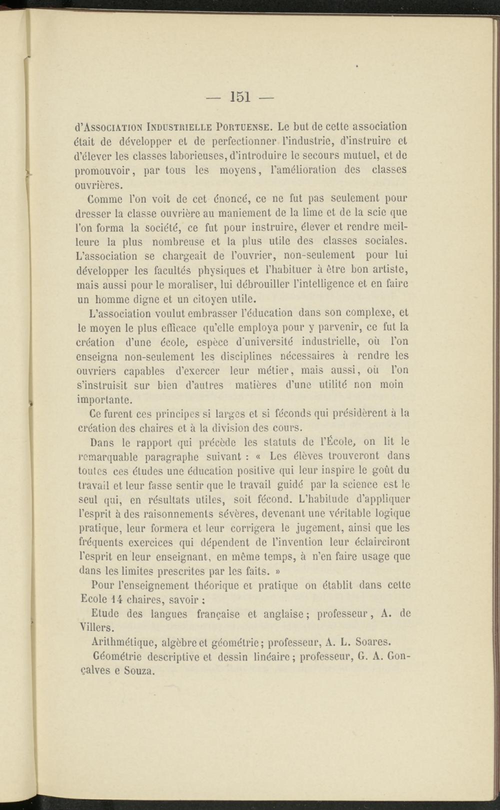 d’AssociA/noN Industrielle Portuense. Le but de cette association était de développer et de perfectionner l’industrie, d’instruire et d’élever les classes laborieuses, d’introduire le secours mutuel, et de promouvoir, par tous les moyens, l’amélioration des classes ouvrières.