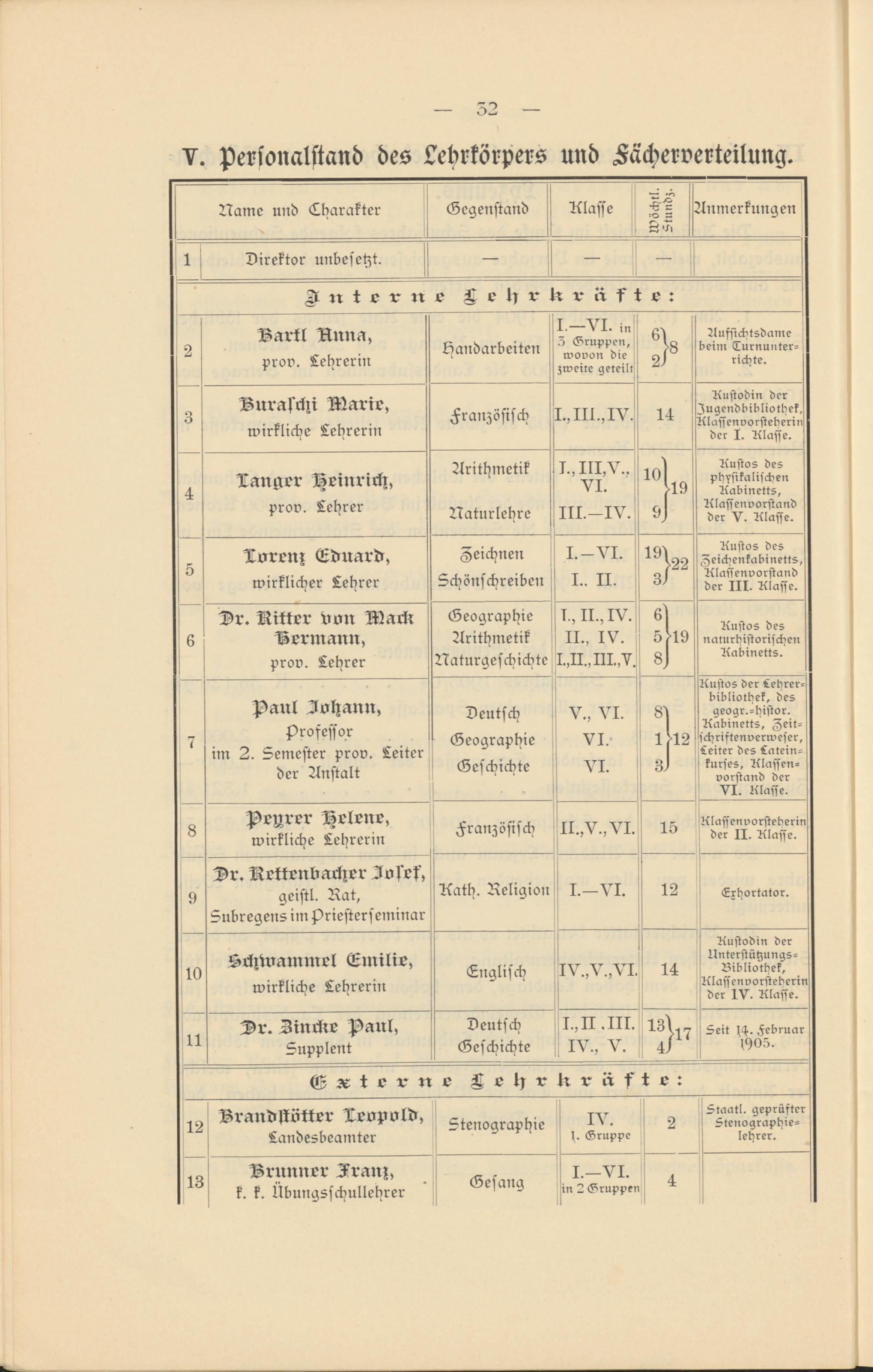 V. personalstand des Lehrkörpers und LächerverteLlung.