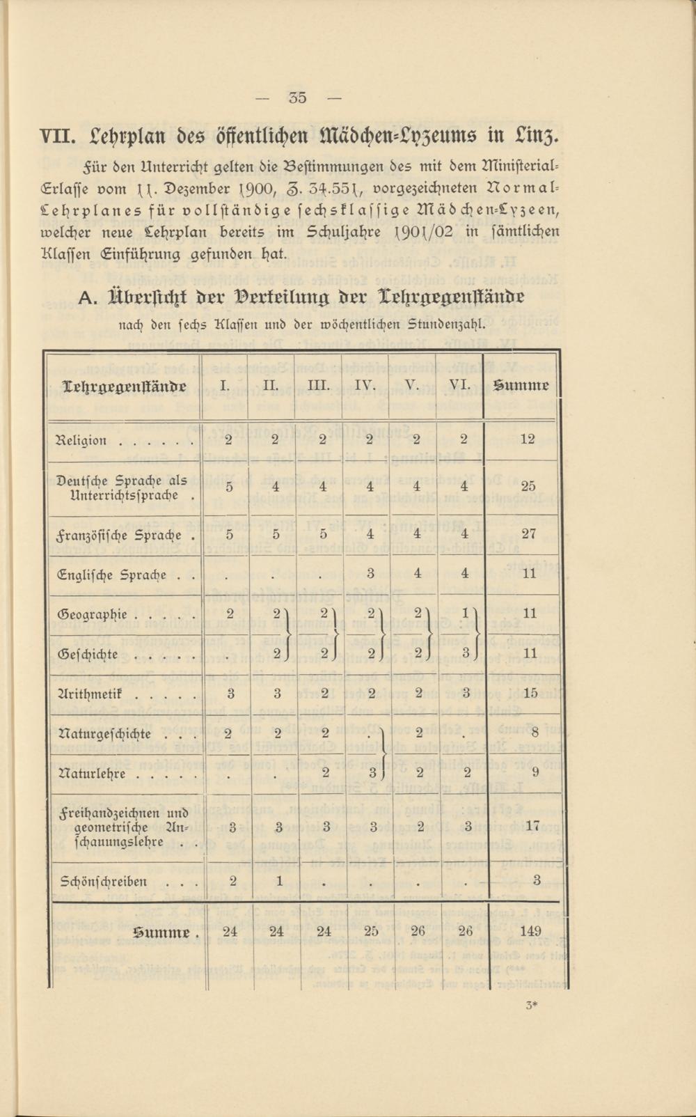 VII. Lehrplan des öffentlichen Mädchen-Lyzeurns in Linz.