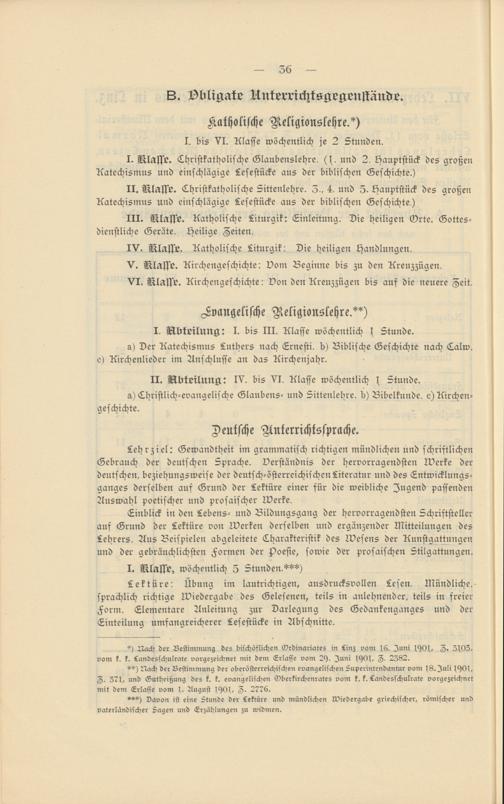Nach der Bestimmung des bischöflichen (Ordinariates in Linz vom t6. Huni lgOt, Z. ZsOZ, vorn k. k. Landesschulrate vorgezeichnet mit dem Erlasse vom 2g. guni sgOs, Z. 2Z82.