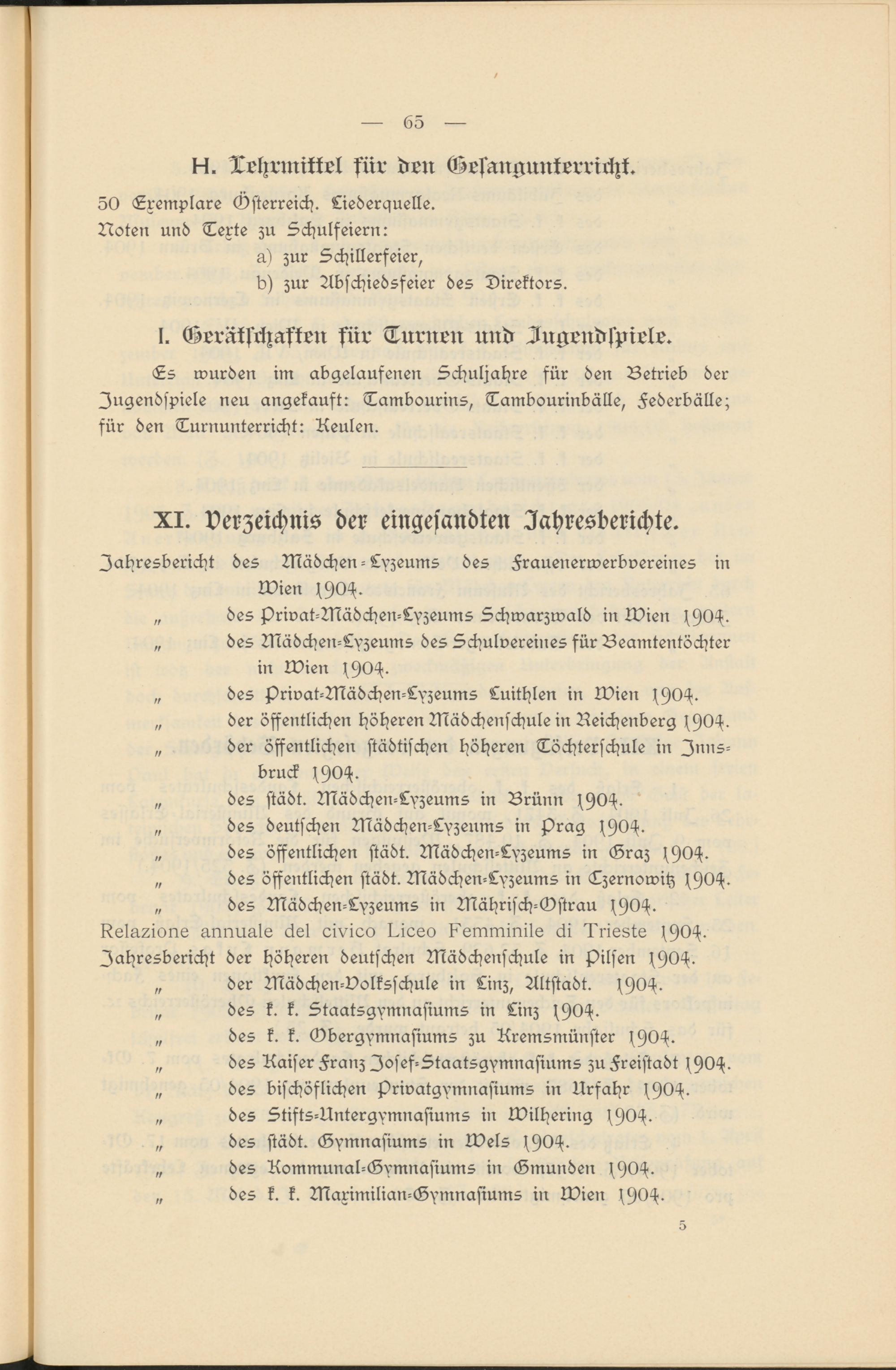Kela^ions unnuale äsl eivioo I^ioeo Kemminils cli Trissts f 90 ^. Jahresbericht der höheren deutschen Mädchenschule in flllsen f90H.