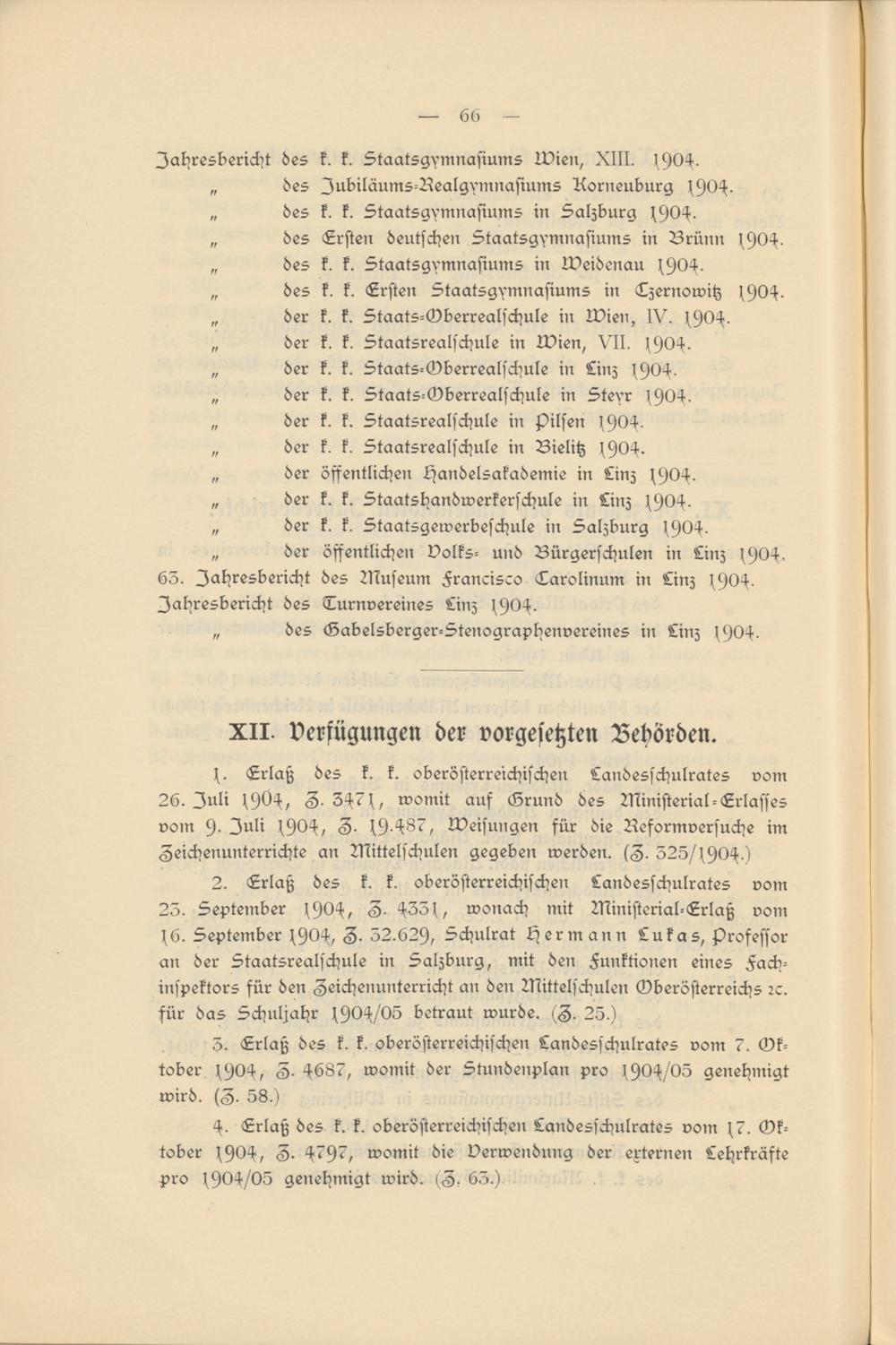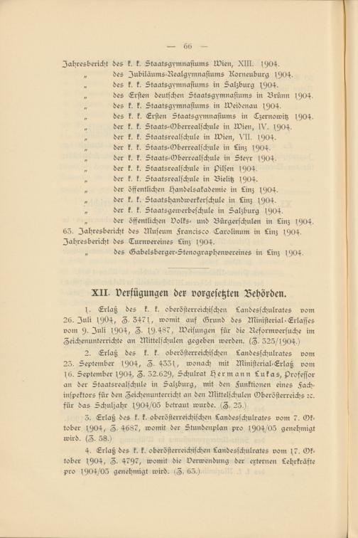 4. Erlaß des k. k. oberösterreichischen Landesschulrates vom 17. Oktober 1904, Z- 4797, womit die Verwendung der externen Lehrkräfte pro 1904/05 genehmigt wird. iZ, 63.)