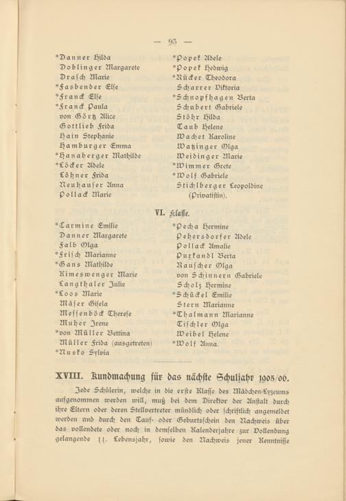 Scharr er Viktoria *Schnopfhagen Berta Schubert Gabriele Stöhr Hilda Taub Helene Wachet Karoline Watzinger Glga Weidinger Marie *w immer Grete *lvolf Gabriele Stichlberger Leopoldine (privatistin).