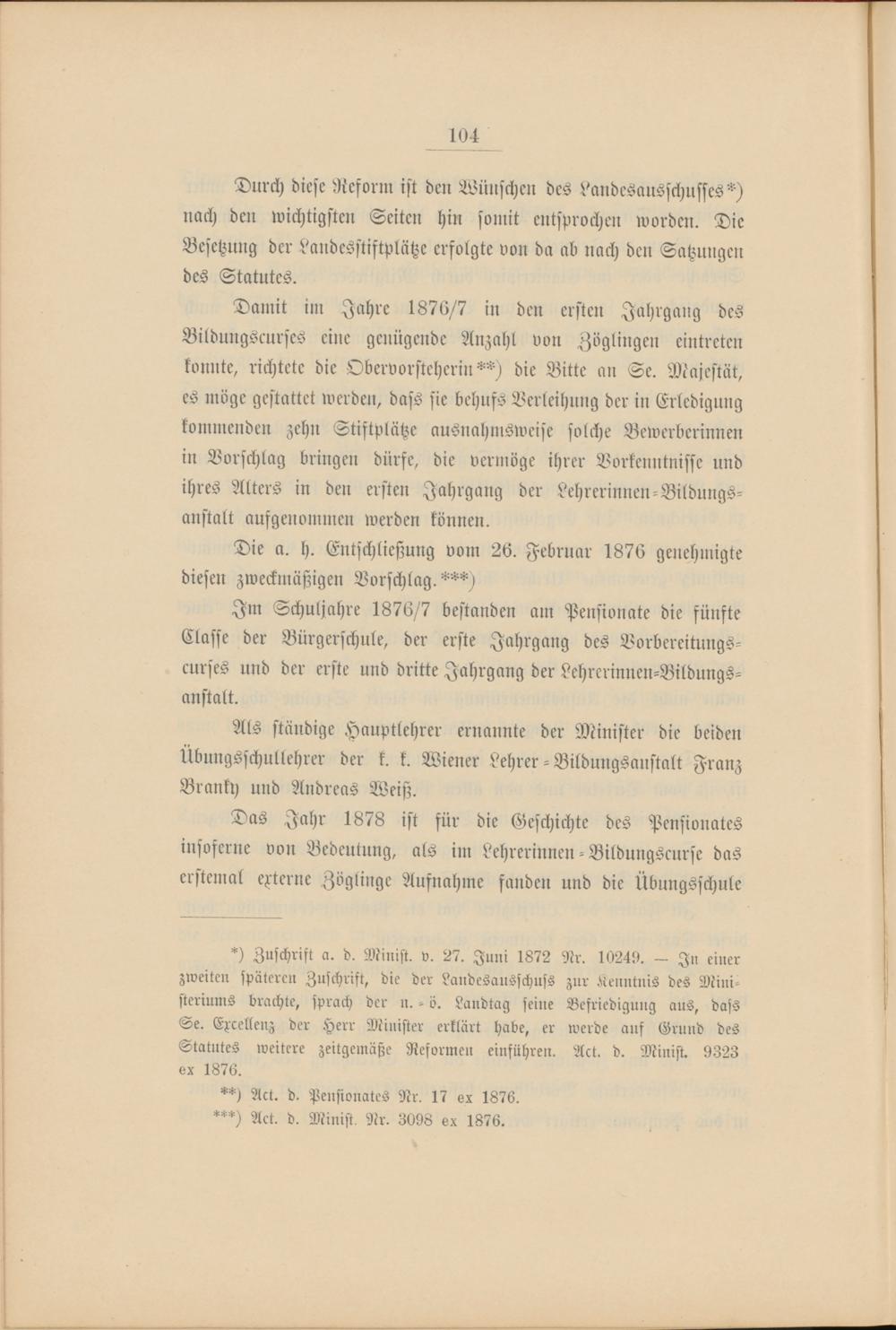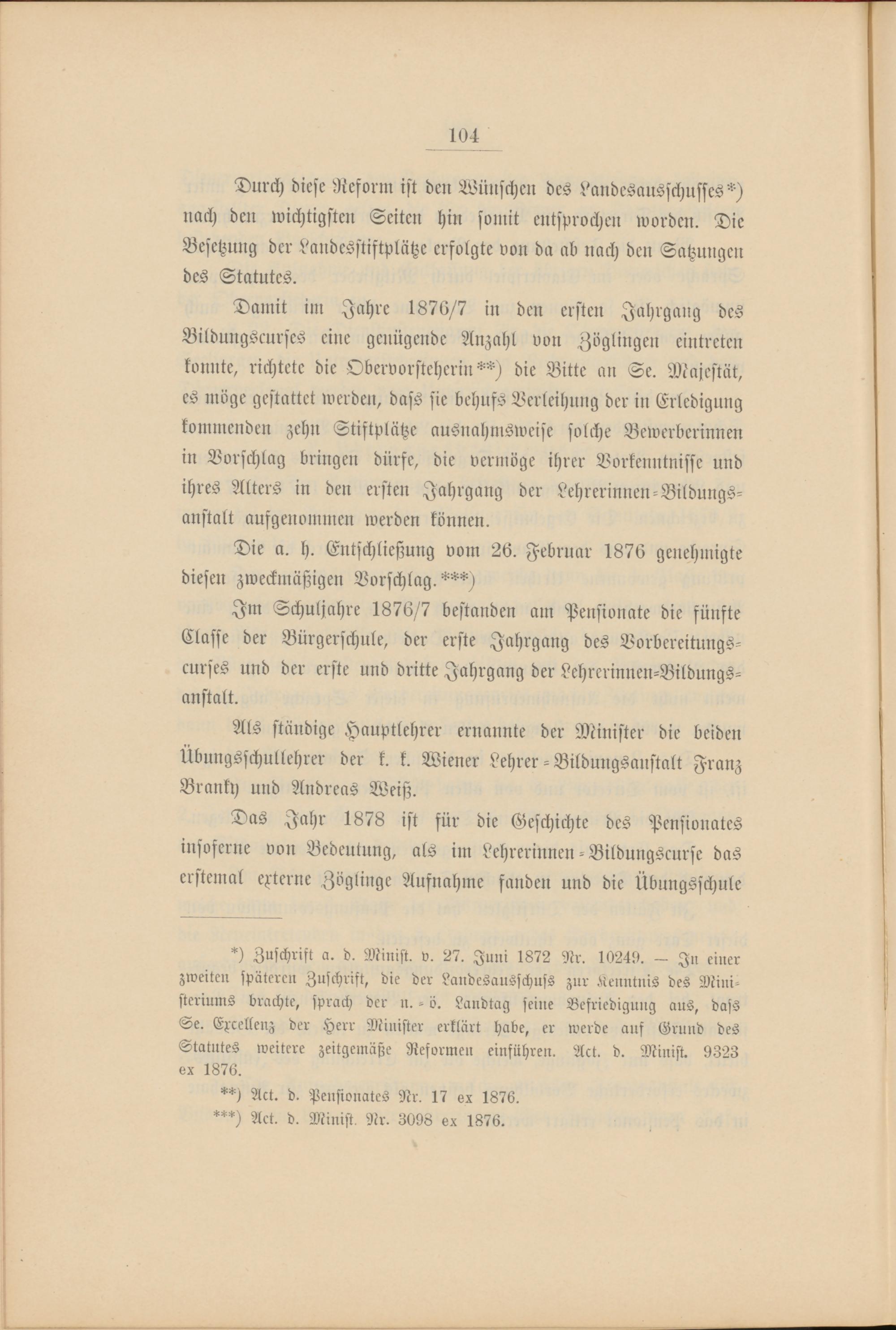 **) Act. d. Pensionates Nr. 17 ox 1876.